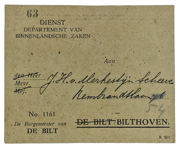 Original WW2 Dutch LBD Document - Luchtbeschermingsdienst course, De Bilt, Bilthoven (1943)