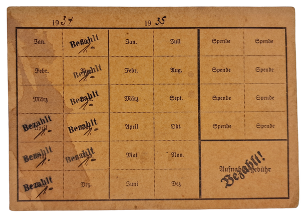 Original WW2 German NSV Document - NS Volkswohlfahrt Mitgliedskarte Württemberg (1934)