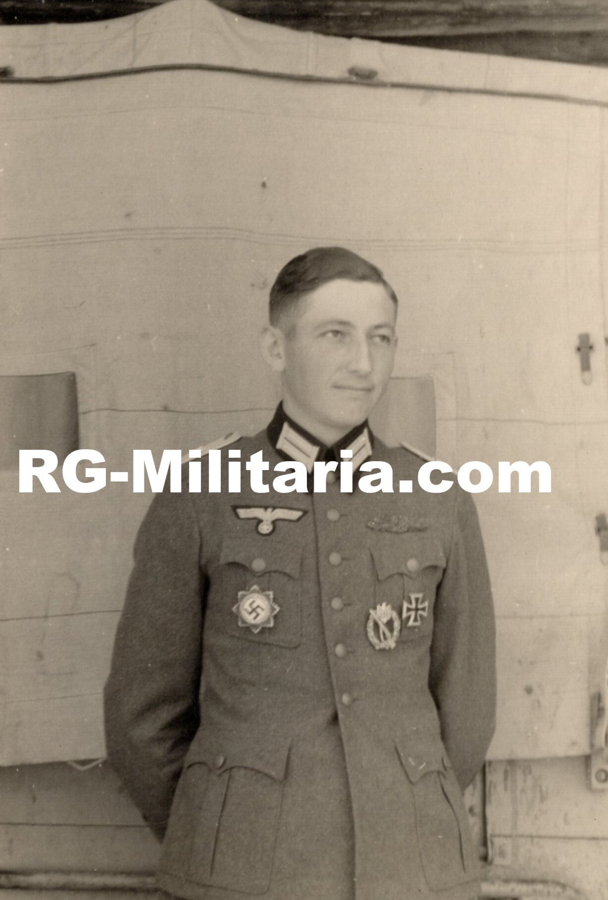 Original WW2 German Photo - DK Deutsche Kreuz + Nahkampfspange wearer wehrmacht (1944)