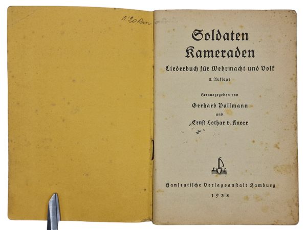 Original WW2 German Brochure - Soldaten Kameraden Liederbuch für Wehrmacht und Volk (1938)