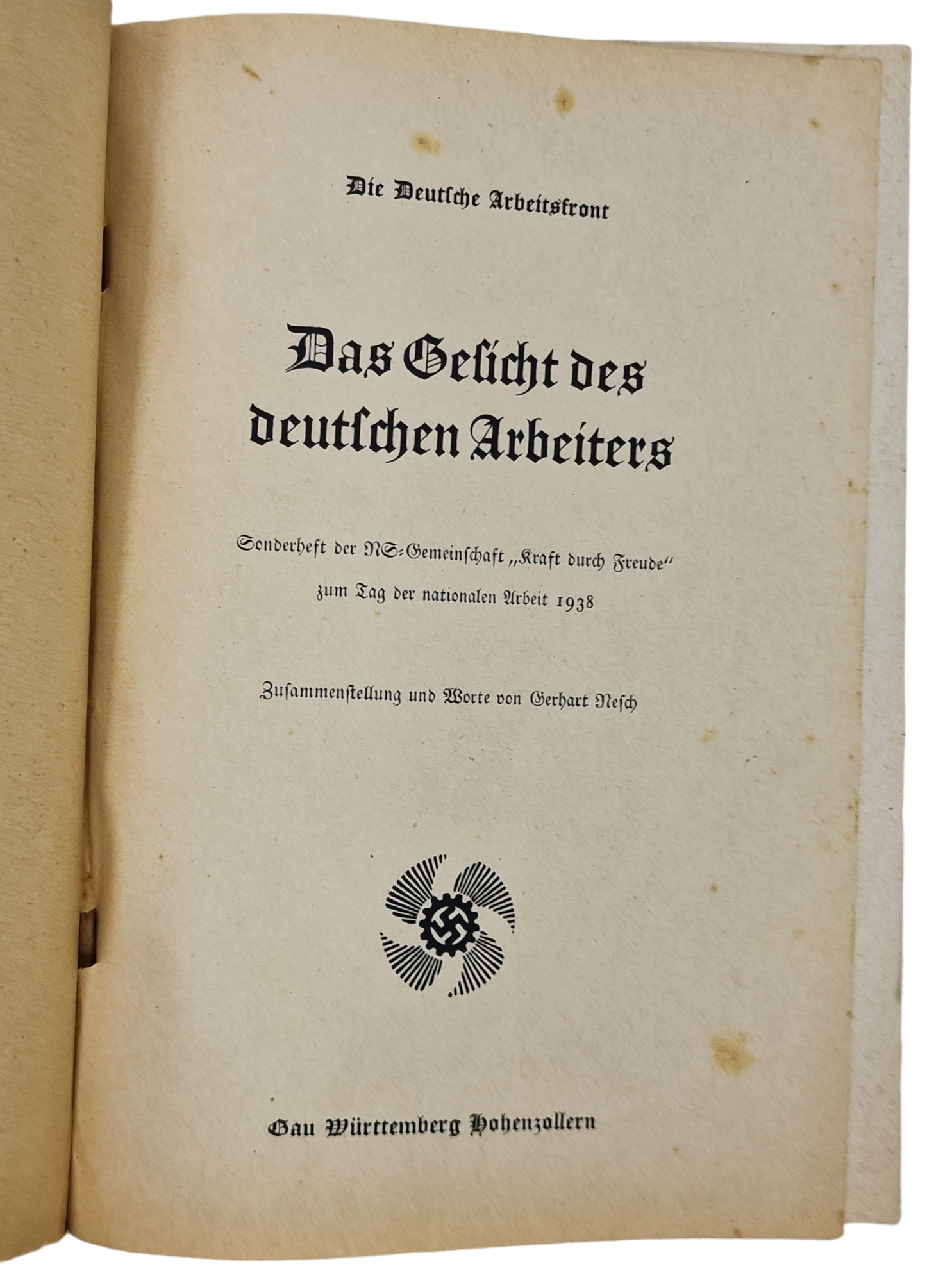 Original WW2 German DAF Brochure - KDF Kraft durch Freude, Das Gesicht des Deutschen Arbeiters, Gerhart Nesch (1938)