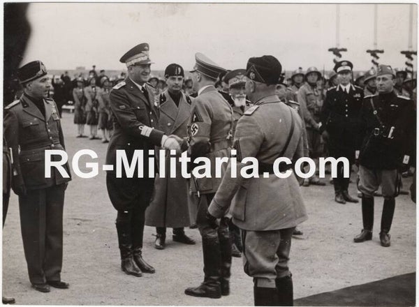 Original WW2 French Press Photo - Adolf Hitler with Benito Mussolini meeting Rodolfo Graziani (1938)