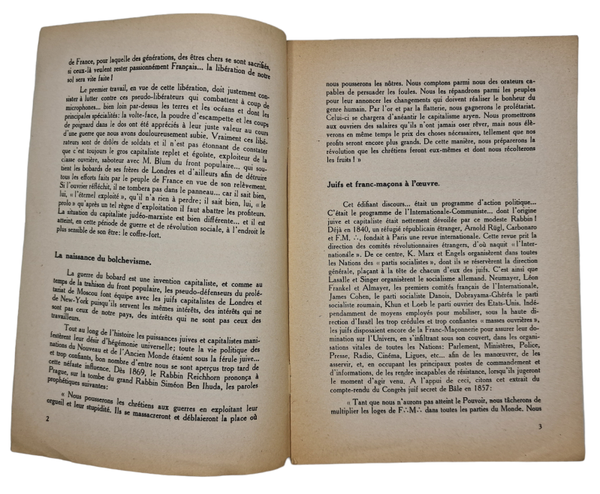 Original WW2 French Antisemitic Brochure - Bolchevisme and Bobards Enterprise Juive, Andre Chaumet (1942)