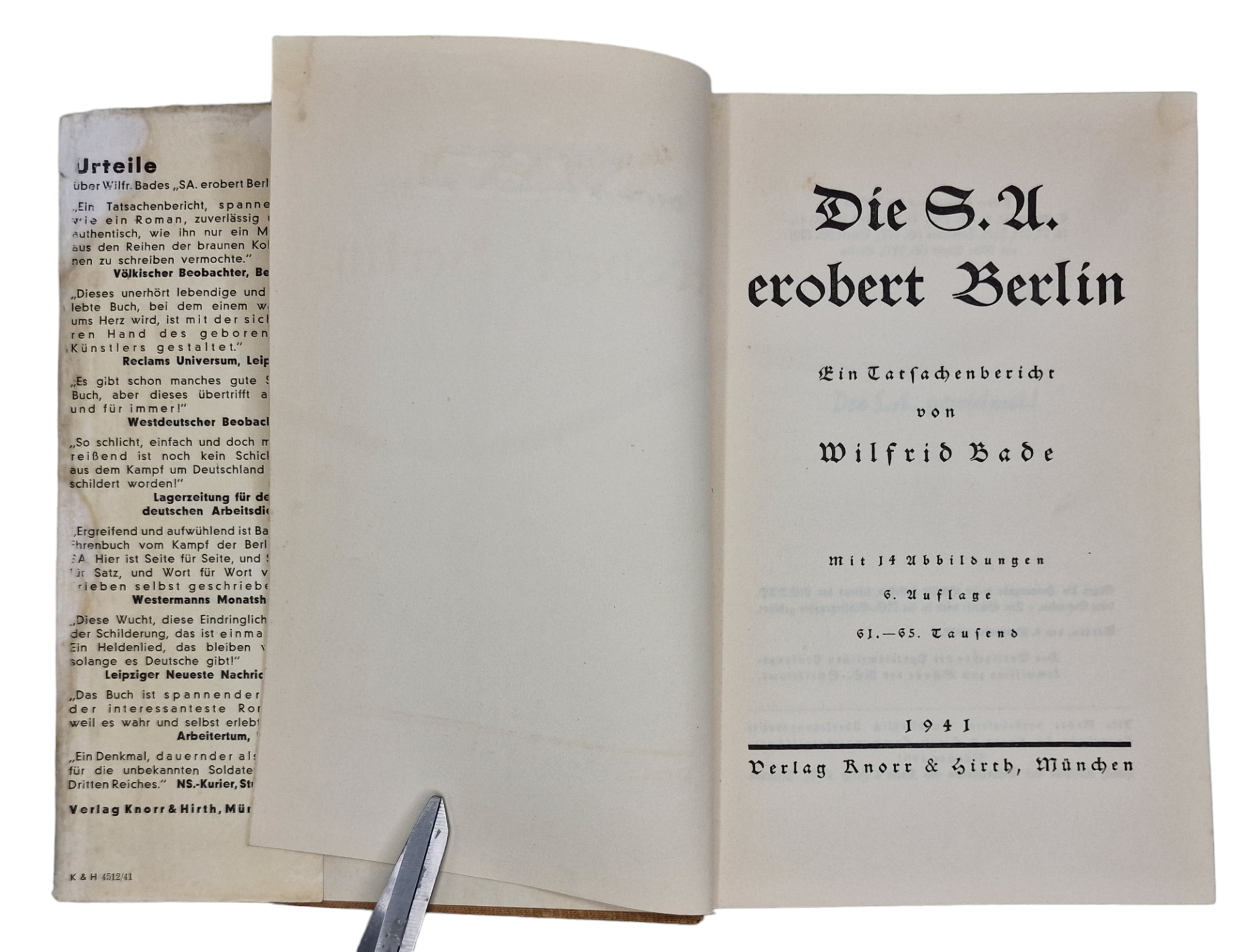 Original WW2 German Book - Die SA erobert Berlin, Wilfrid Bade (1941)