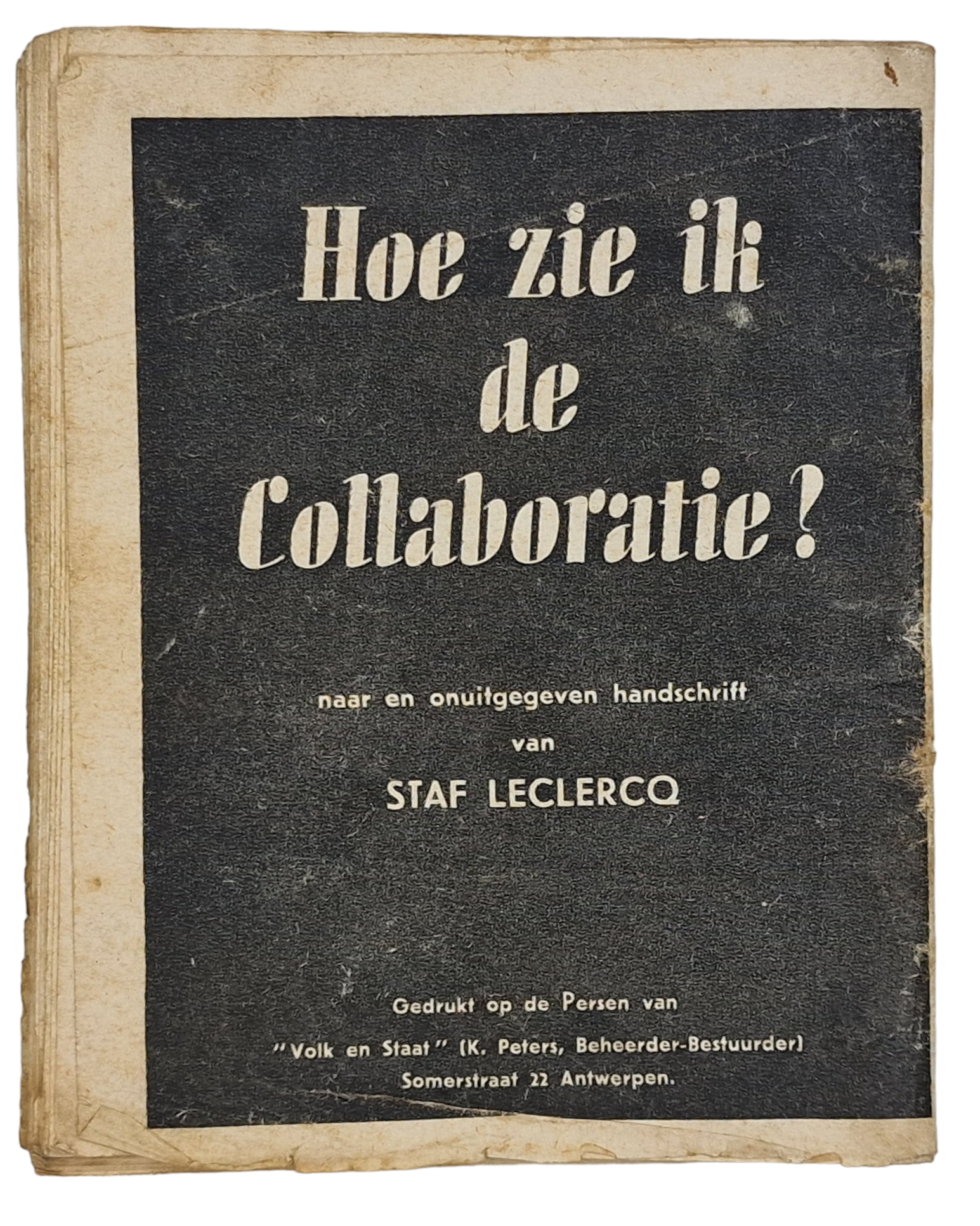 British black propaganda leaflet for Belgium. ''Hoe zie ik de Collaboratie? Staf Leclercq''. The cover makes it look like an Flemish collaboration brochure, but when looking at the inside you will see all kinds of information to help the resistance.
