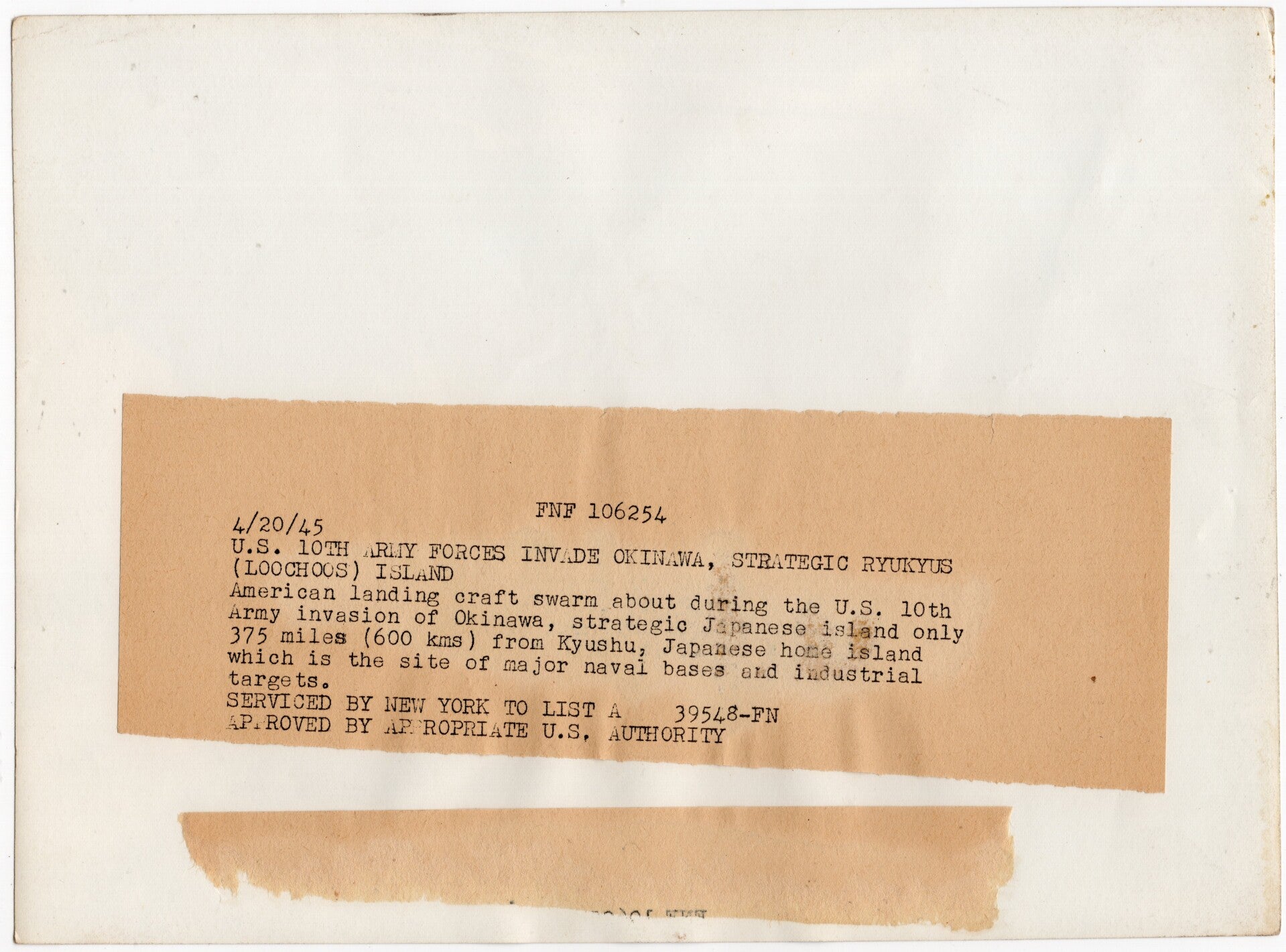 Original WW2 US Press Photo - US 10th Army Forces invade Okinawa, Japan (1945)