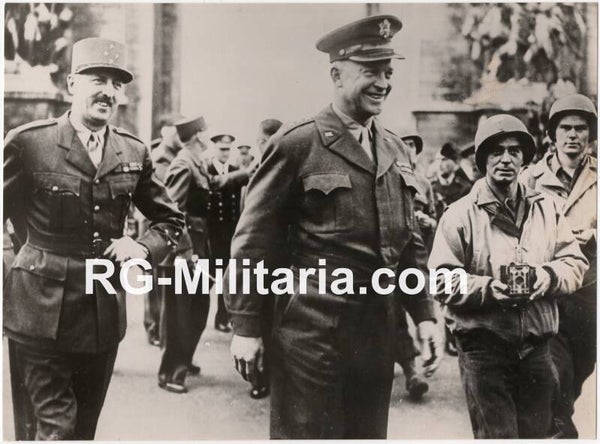 Original WW2 French Press Photo - Liberation of Paris, Dwight D. Eisenhower and Charles de Gaulle, France (1944)