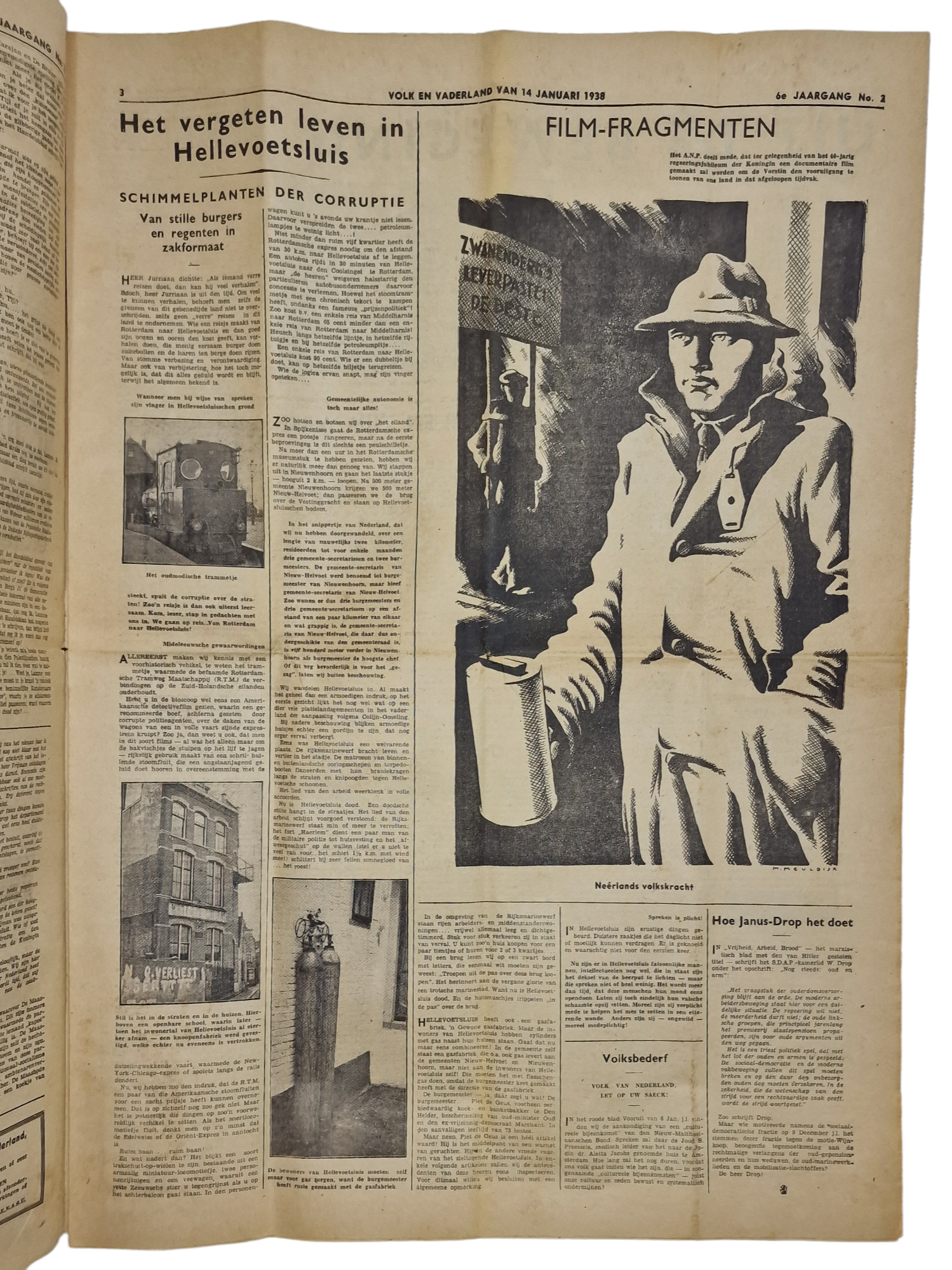 Original WW2 Dutch Collaboration NSB Newspaper - Volk en Vaderland, 6th year No. 2, ''Aanslag Blauwe Zand'', January (1938)