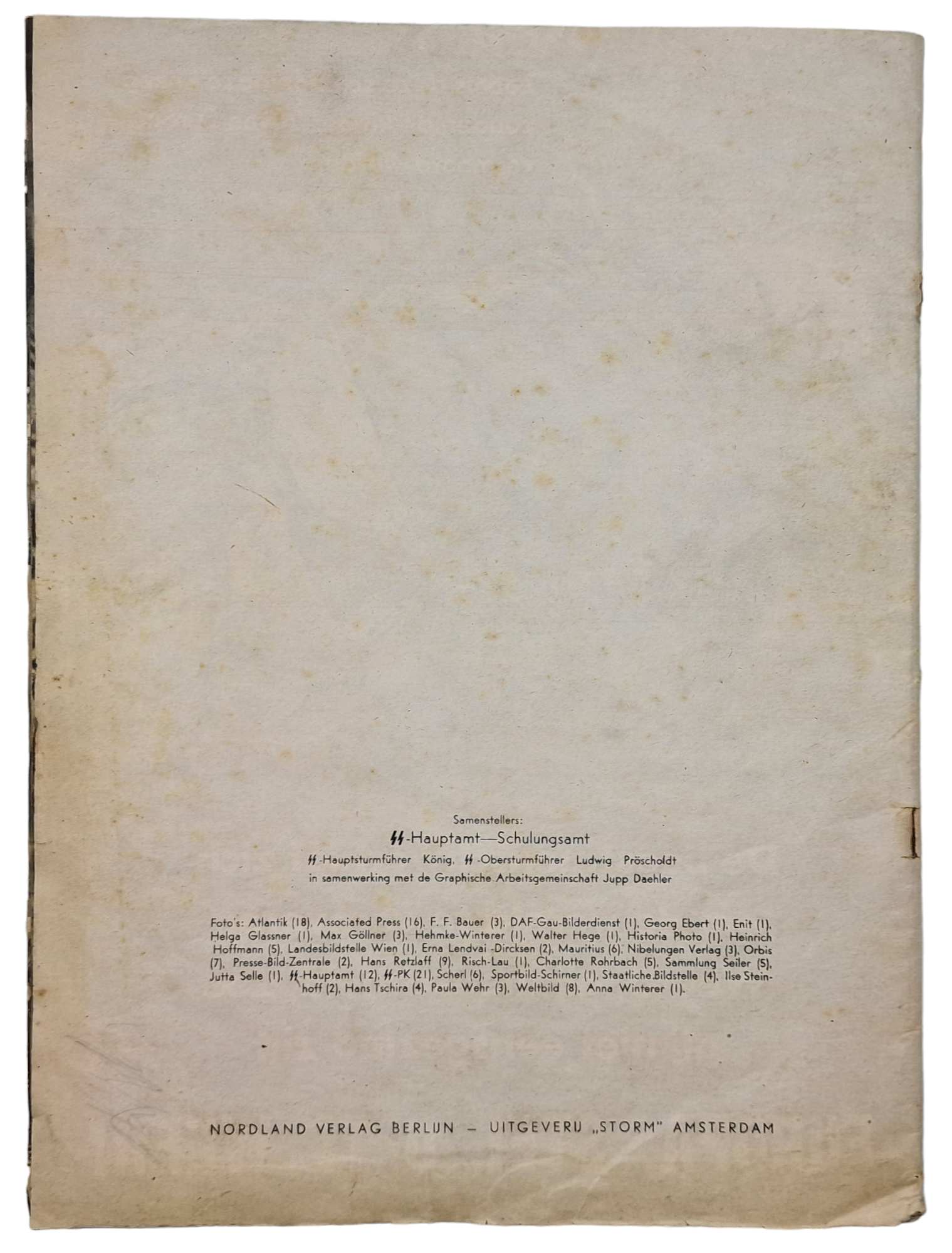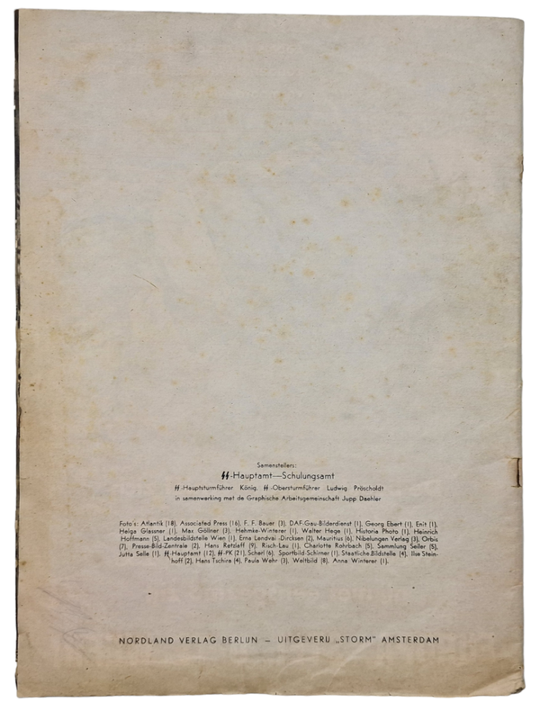 Zeer bekende Antisemitische en Anti Oosteuropeese brochure ''De Beestmensch''. De brochure gaat in op het ''Nazi ideaalbeeld'' tegenover het volgens de nazi's ''beestmensen''. Deze brochure is uitgegeven in verschillende talen. Het origineel is uitgegeven in het Duits onder de naam ''Der Untermensch'', gemaakt door de SS-Hauptamt en uitgegeven door Nordland Verlag Berlijn, geprint door de Nederlandse SS uitgeverij Storm Amsterdam.
