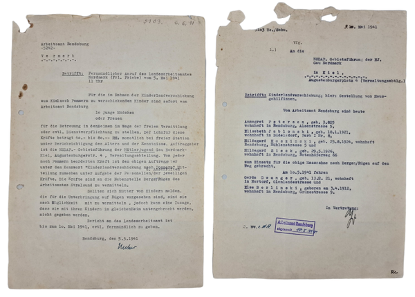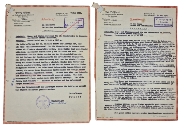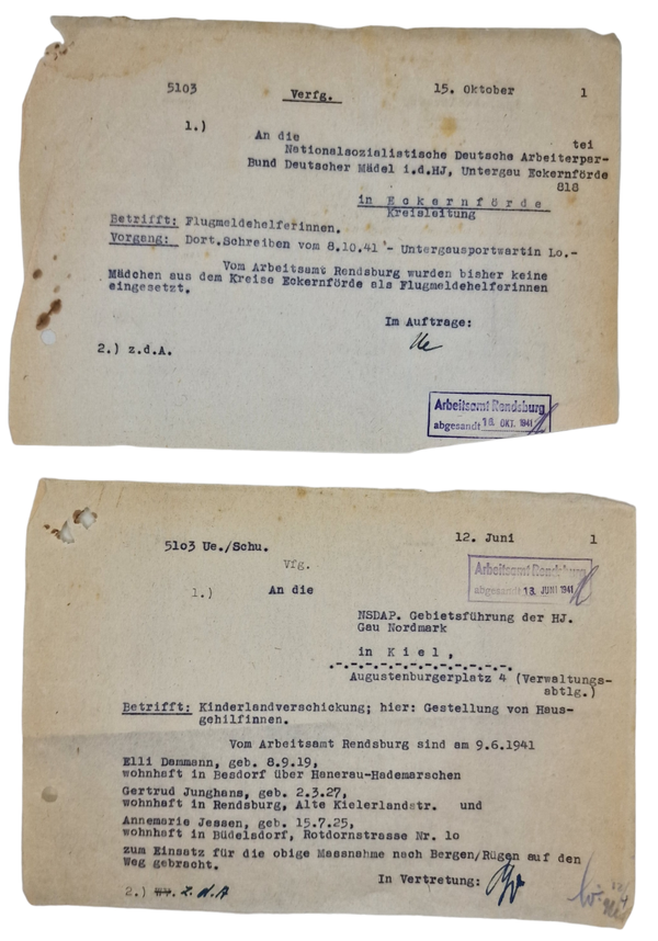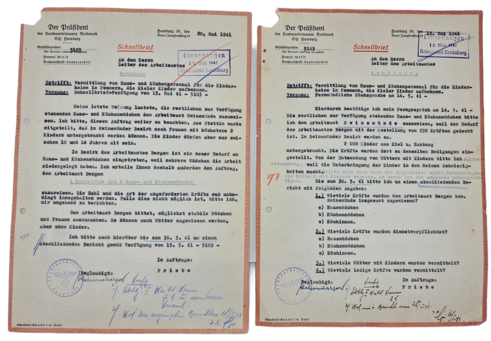 Diverse documenten van de Arbeitsamt Rendsburg over de Kinderheim in Rendsburg.