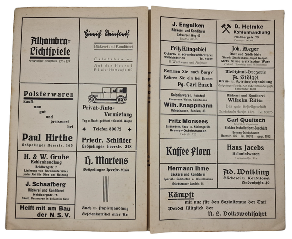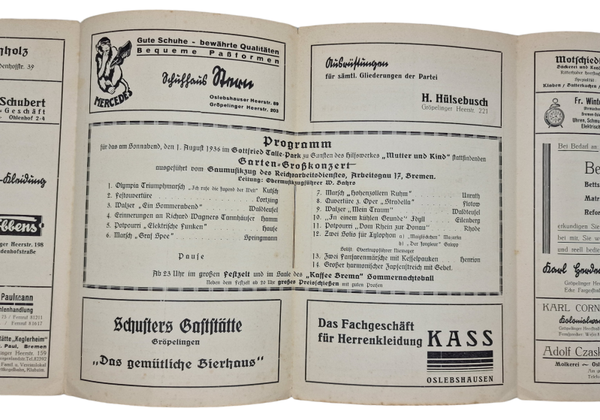 Original WW2 German Document - NSV Ortsgruppe Gröpelingen, Concert Mutter und kind (1936)