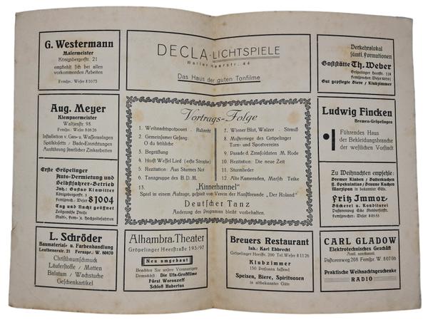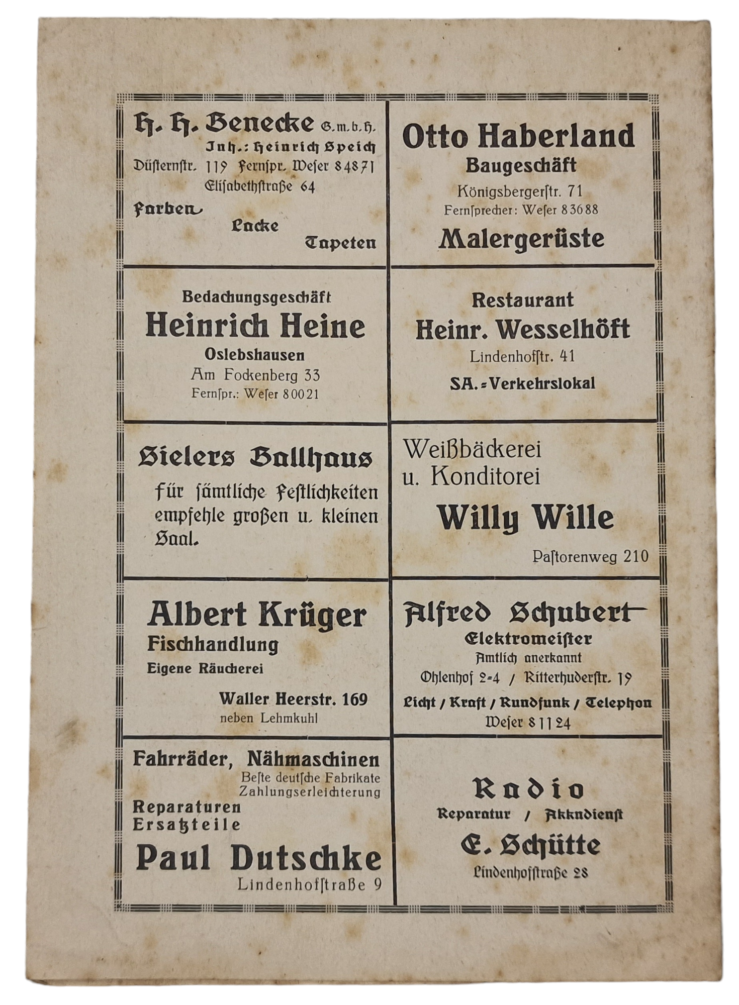 Original WW2 German Document - SA Sturm R 4/266 Kameradschafts Abend, Gröpelingen (1934)