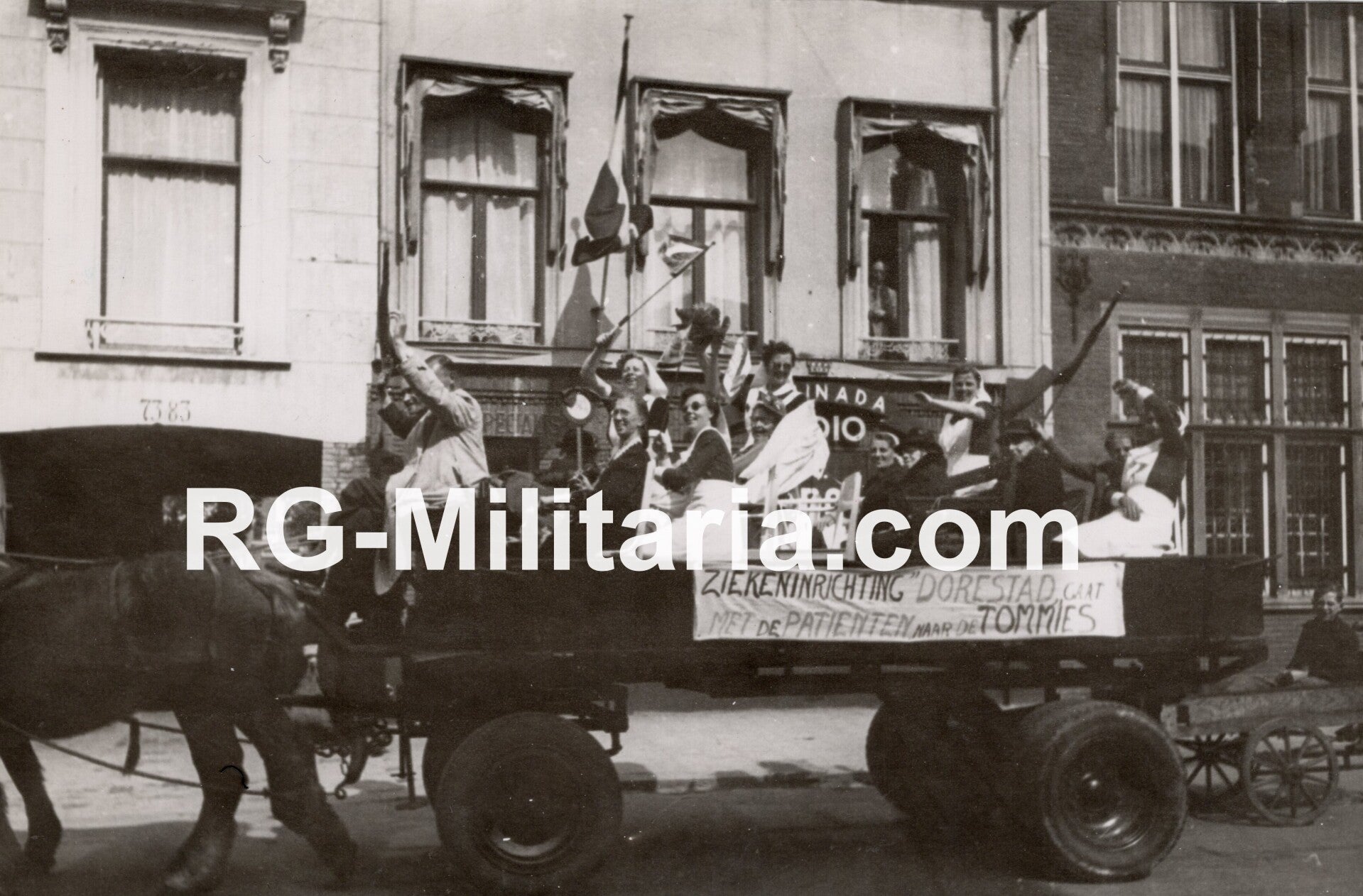 Original WW2 Dutch Liberation Press Photo - Civilians celebrating the liberation, The Hague (1945)