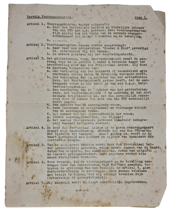 Original WW2 Dutch NVD Document - Nederlandsche Volksdienst WHN Winterhulp Nederland, Voorrangskaarten information