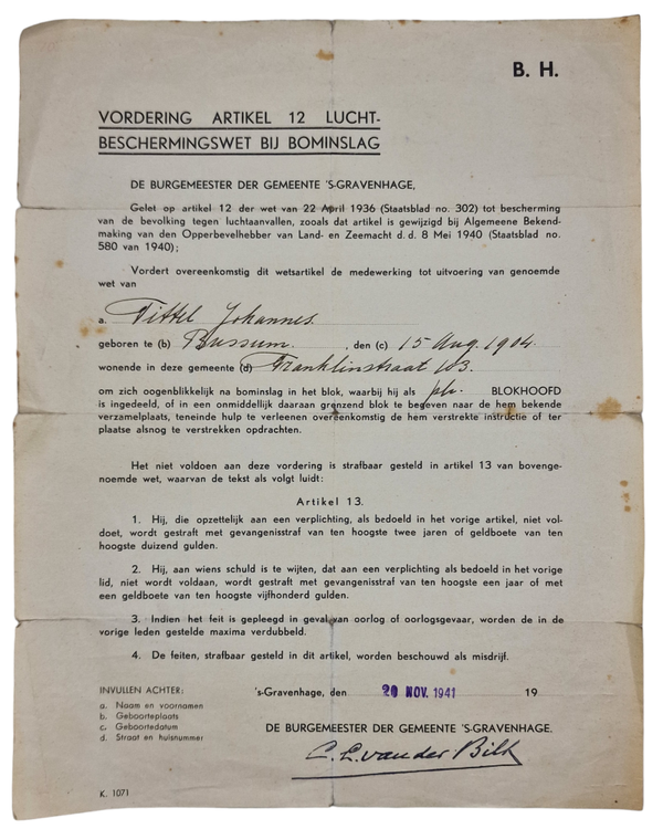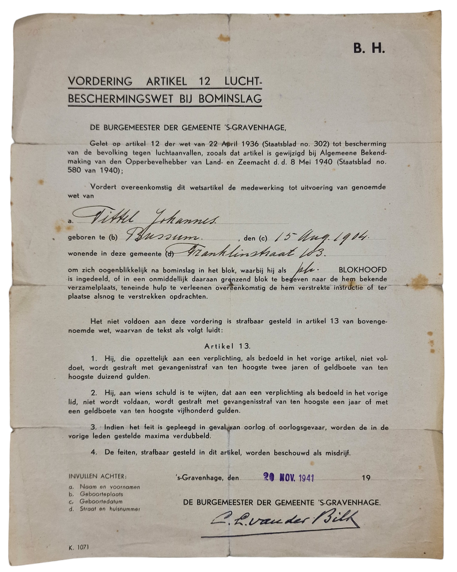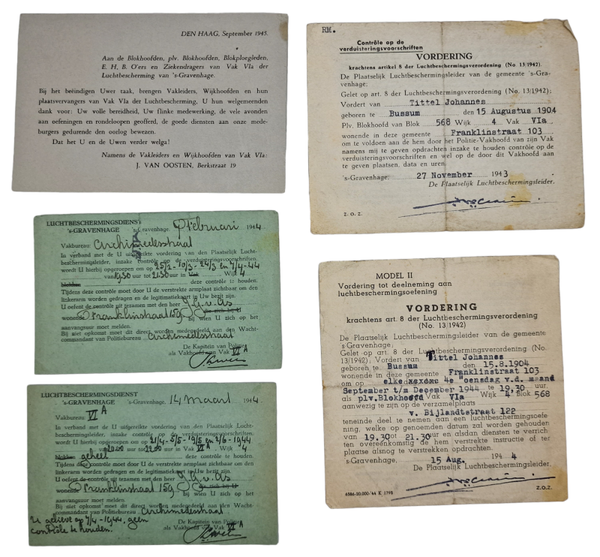 Original WW2 Dutch LBD Document - Luchtbeschermingsdienst The Hague Document set (1941 1945)
