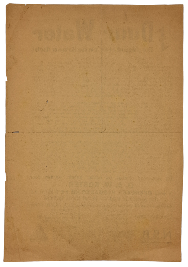 Origineel Wo2 Nederlands Collaboratie NSB Document - Duur Water, Koster, Amsterdam (1937)