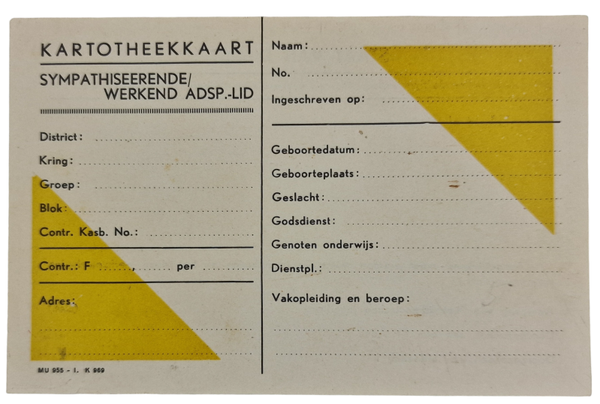 Original WW2 Dutch Collaboration NSB Document - Karthotheekkaart Sympathiseerende Adsp.-lid