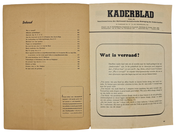 Orginal WW2 Dutch Collaboration NSB Magazine - NSB Kaderblad 2nd year no. 19 (1943)