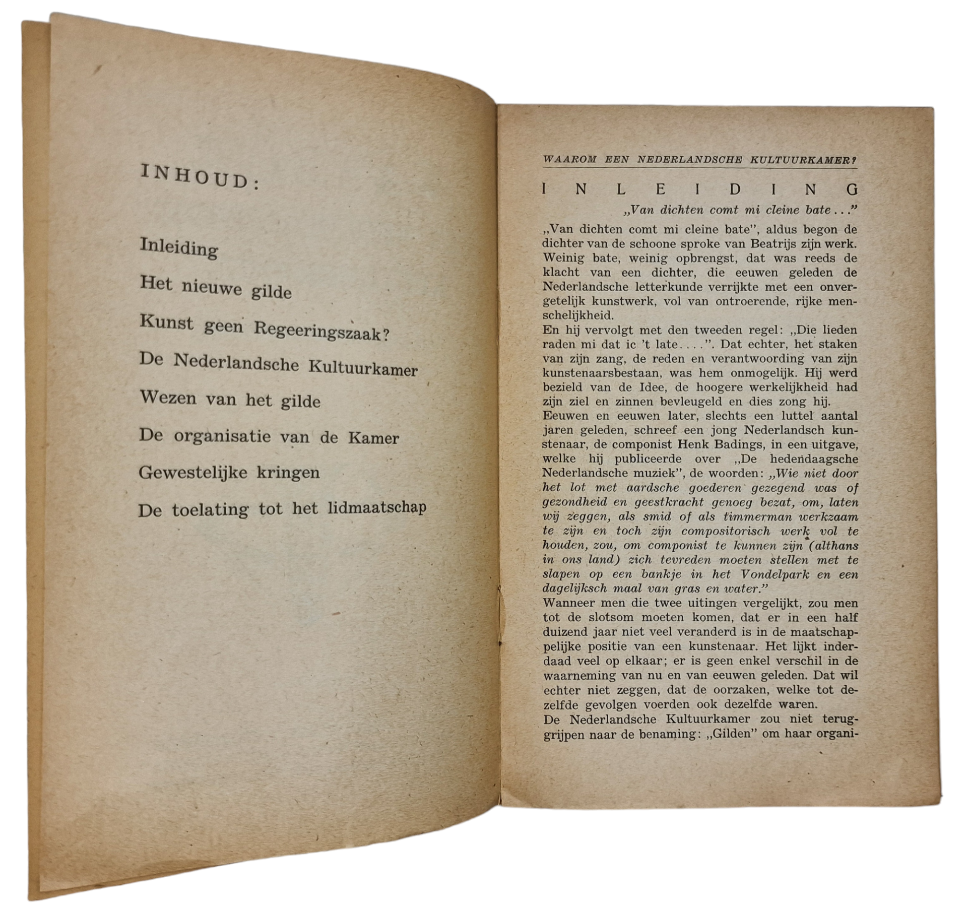 Brochure by the Nederlandsche Kultuurkamer about its organization.