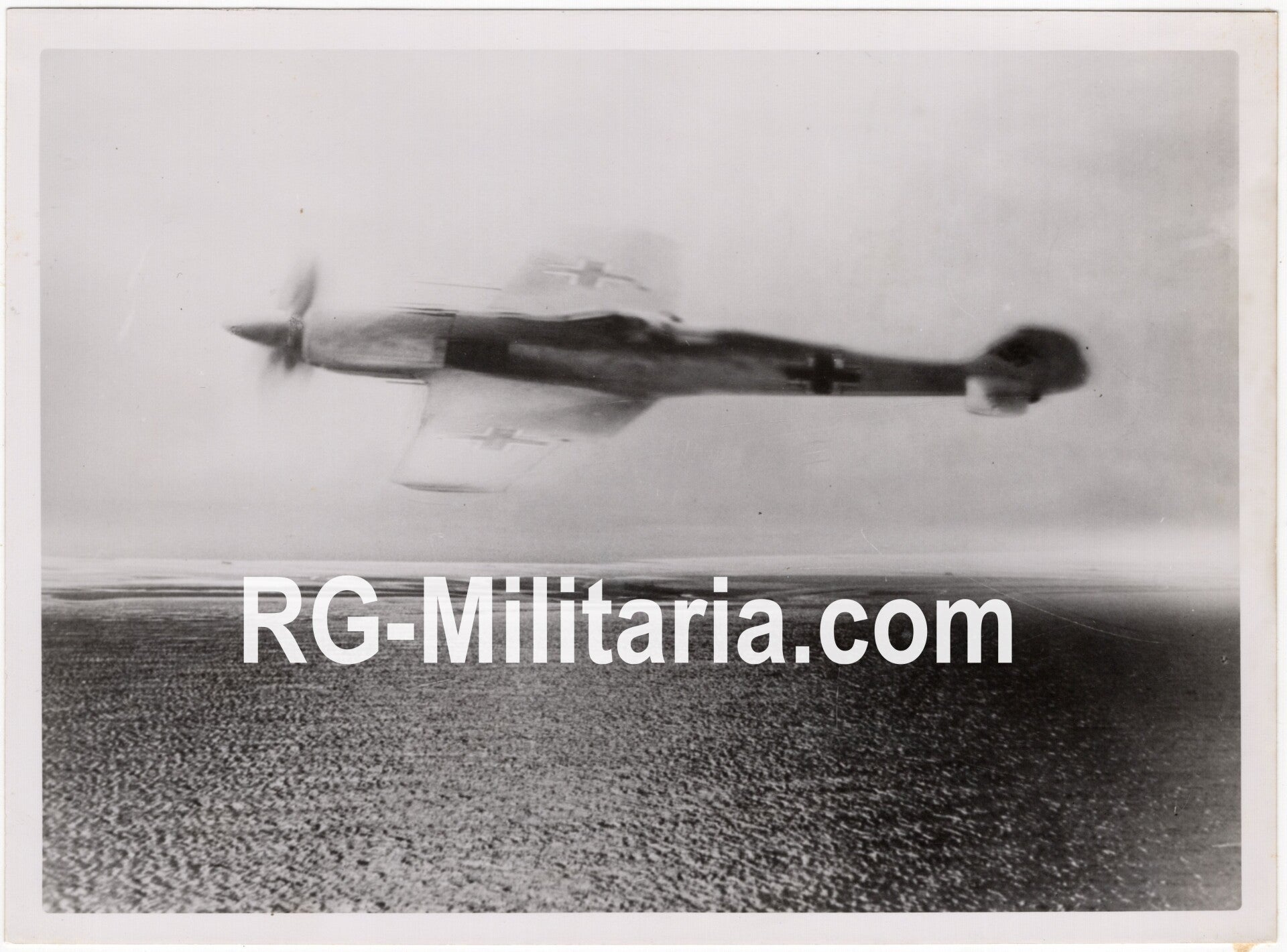 Original WW2 German Press Photo - Luftwaffe Focke Wulf FW 190 airplane going fast over the sea (1942)