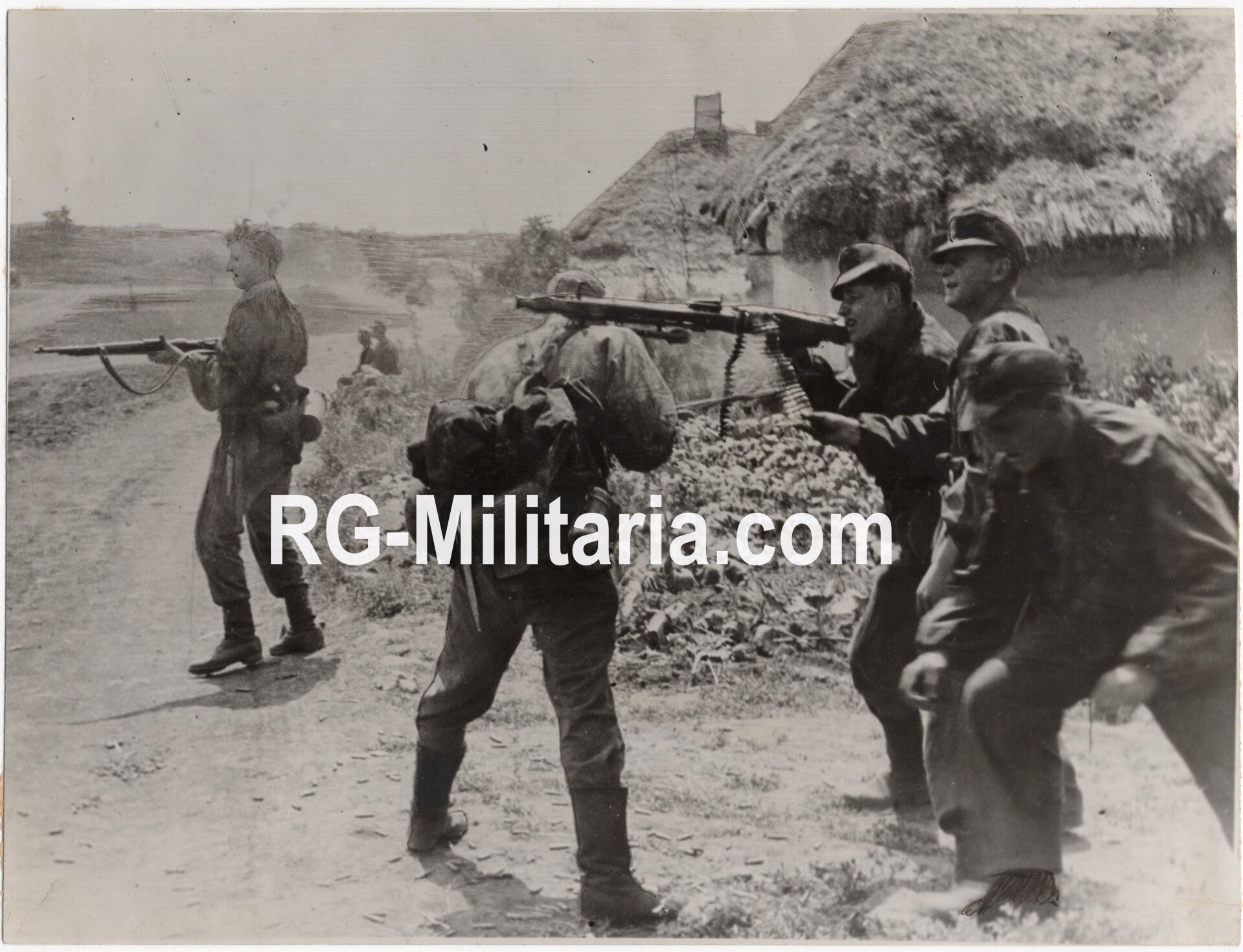 Originele Wo2 Duitse Persfoto - Duitse Waffen SS MG42 schutters aan het oostfront (1943)