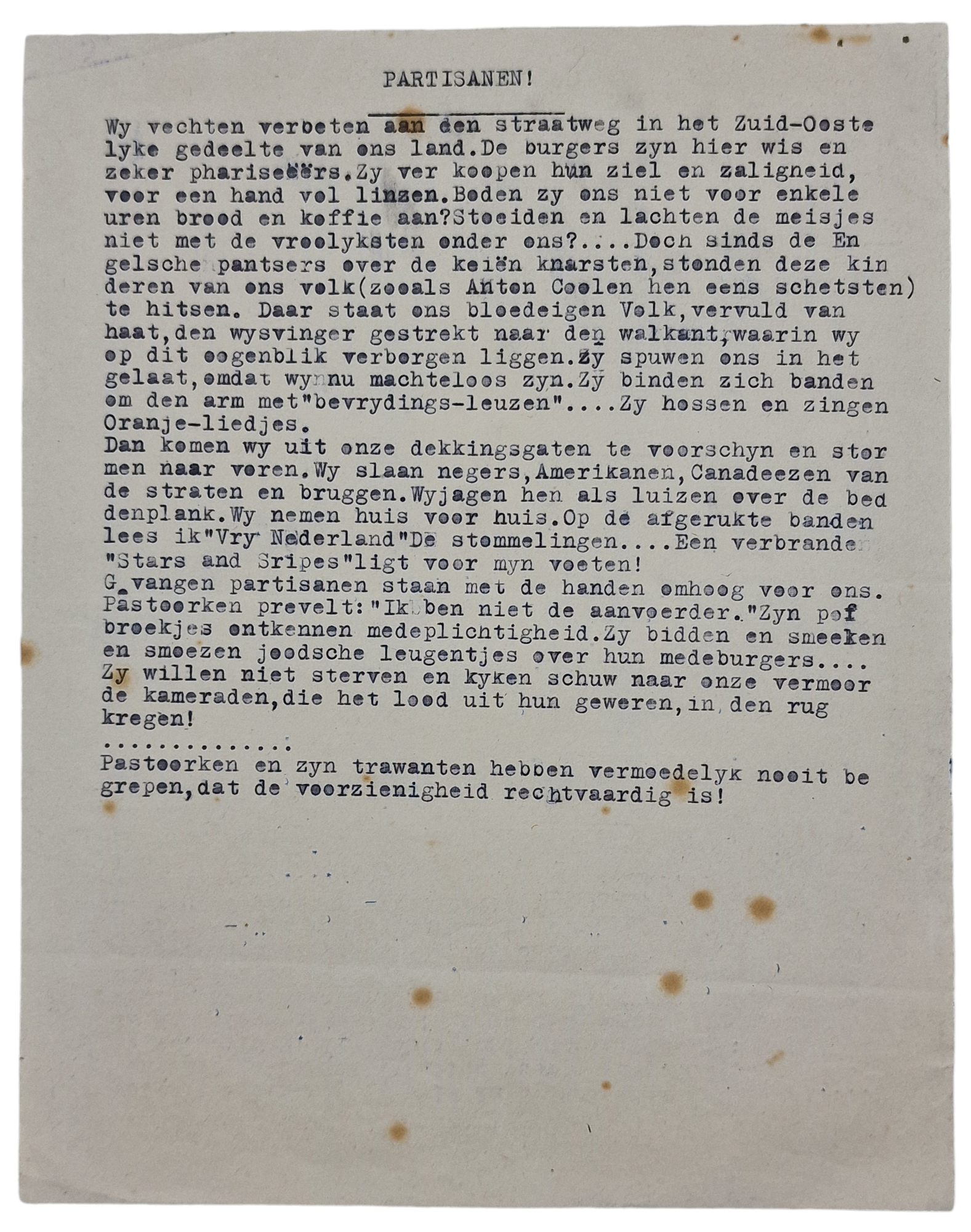 Origineel Wo2 Nederlands Waffen SS Document - Propaganda brief Melchert Schuurman Jeugdstorm Kompanie ''Partisanen!''