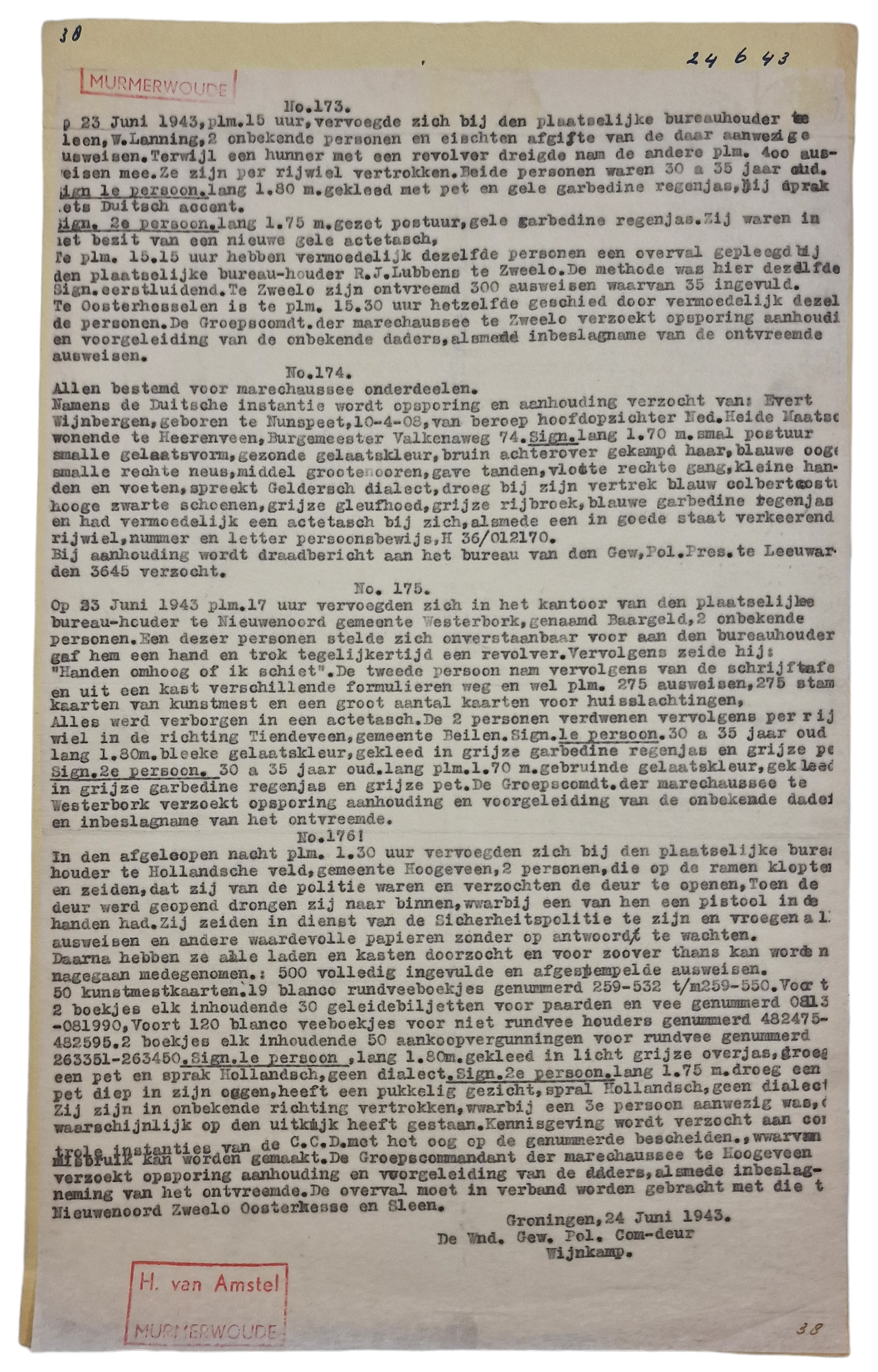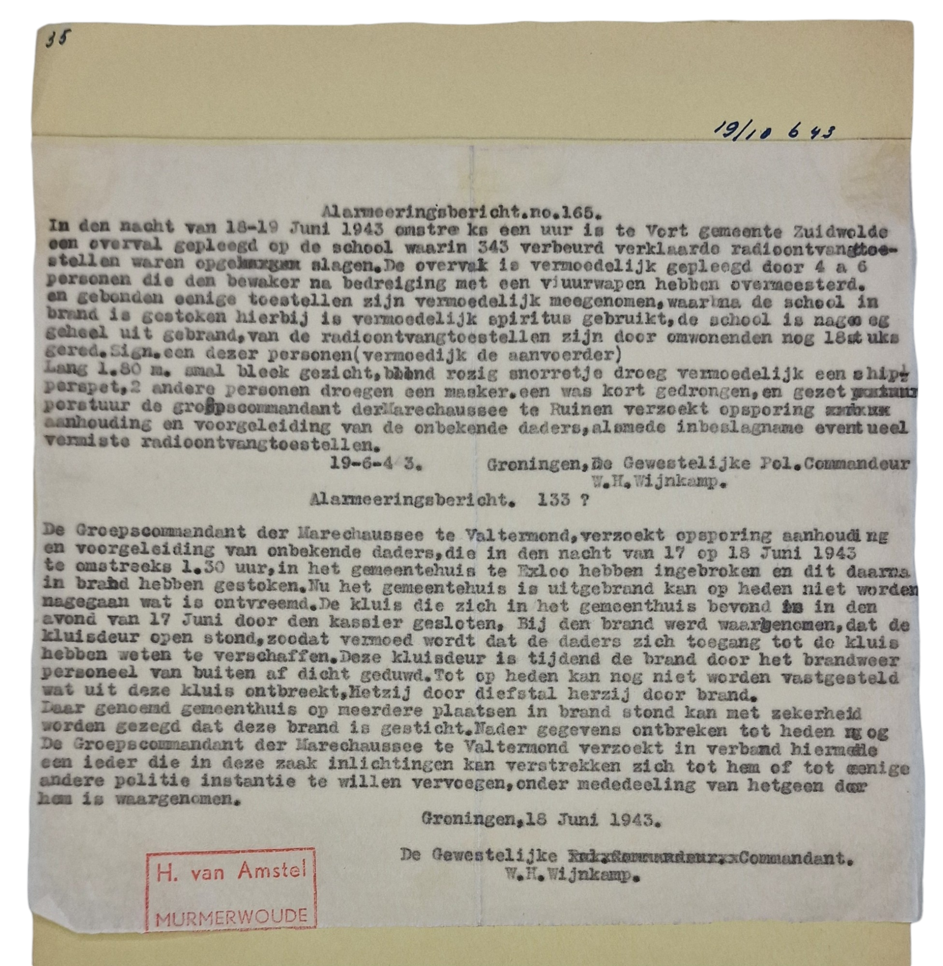 Original WW2 Dutch Document - Police reports Friesland & Groningen (1940 1943)