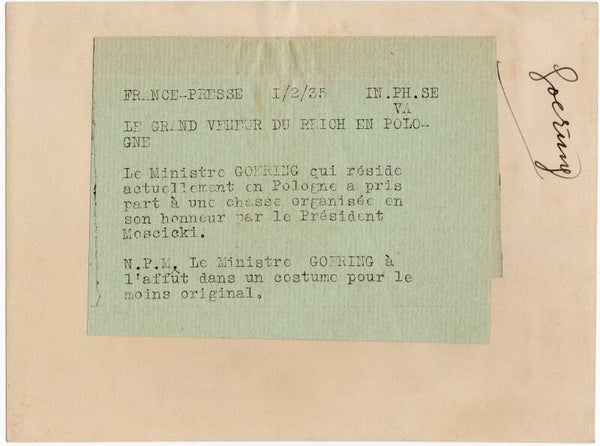 Originele Wo2 Franse Persfoto - Luftwaffe Reichsmarschall Hermann Göring aan het jagen in Polen (1935)