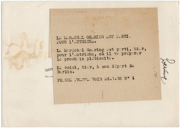 Originele Wo2 Franse Persfoto - Luftwaffe Reichsmarschall Hermann Göring met een Veldmaarschalk baton, Berlijn (1938)