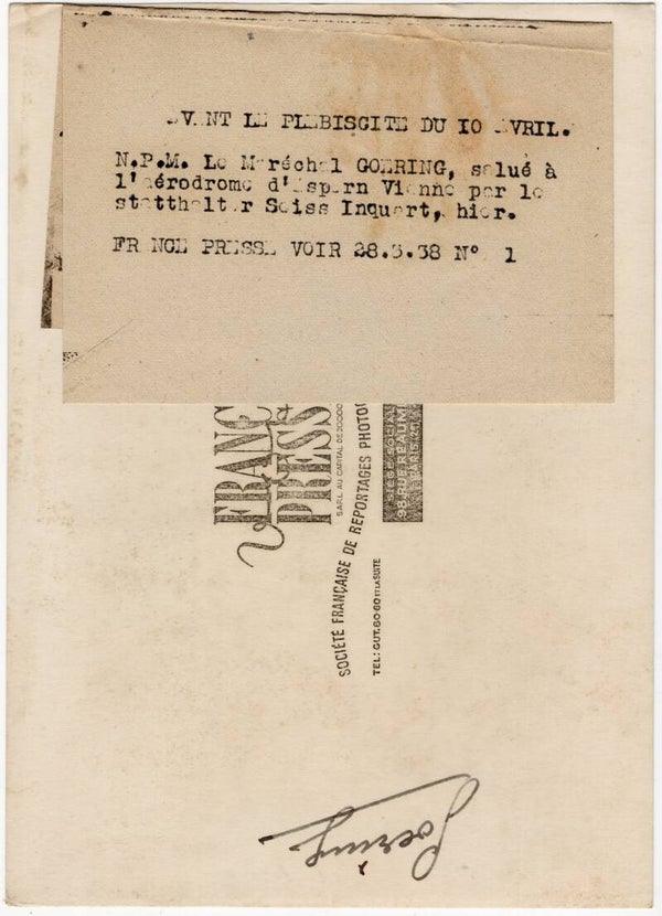 Originele Wo2 Franse Persfoto - Luftwaffe Reichsmarschall Hermann Göring met een Veldmaarschalk baton + Bloedorde, Seyss-Inquart in Wenen (1938)