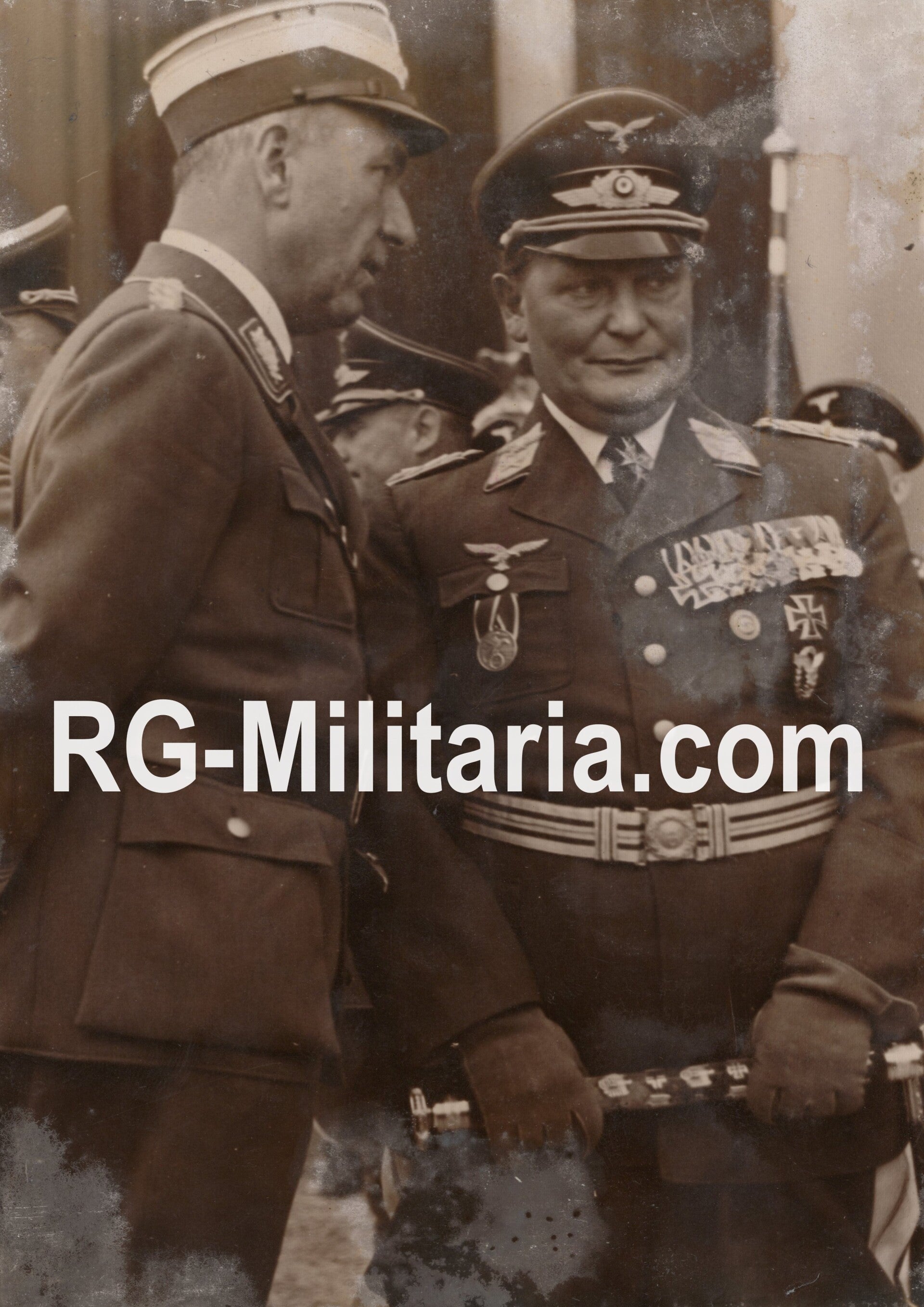 Originele Wo2 Franse Persfoto - Luftwaffe Reichsmarschall Hermann Göring met een Veldmaarschalk baton + Bloedorde, Seyss-Inquart in Wenen (1938)