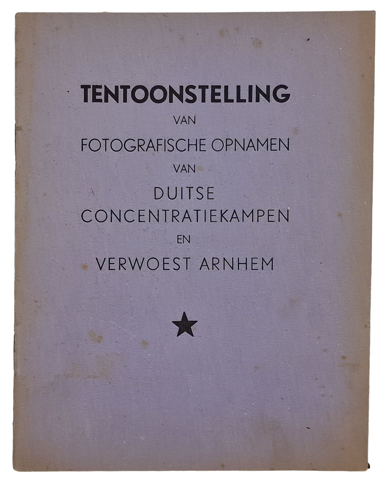 Originele Wo2 Dutch Brochure - Tentoonstelling van fotografische opnamen van Duitse concentratiekampen en verwoest Arnhem (1945)