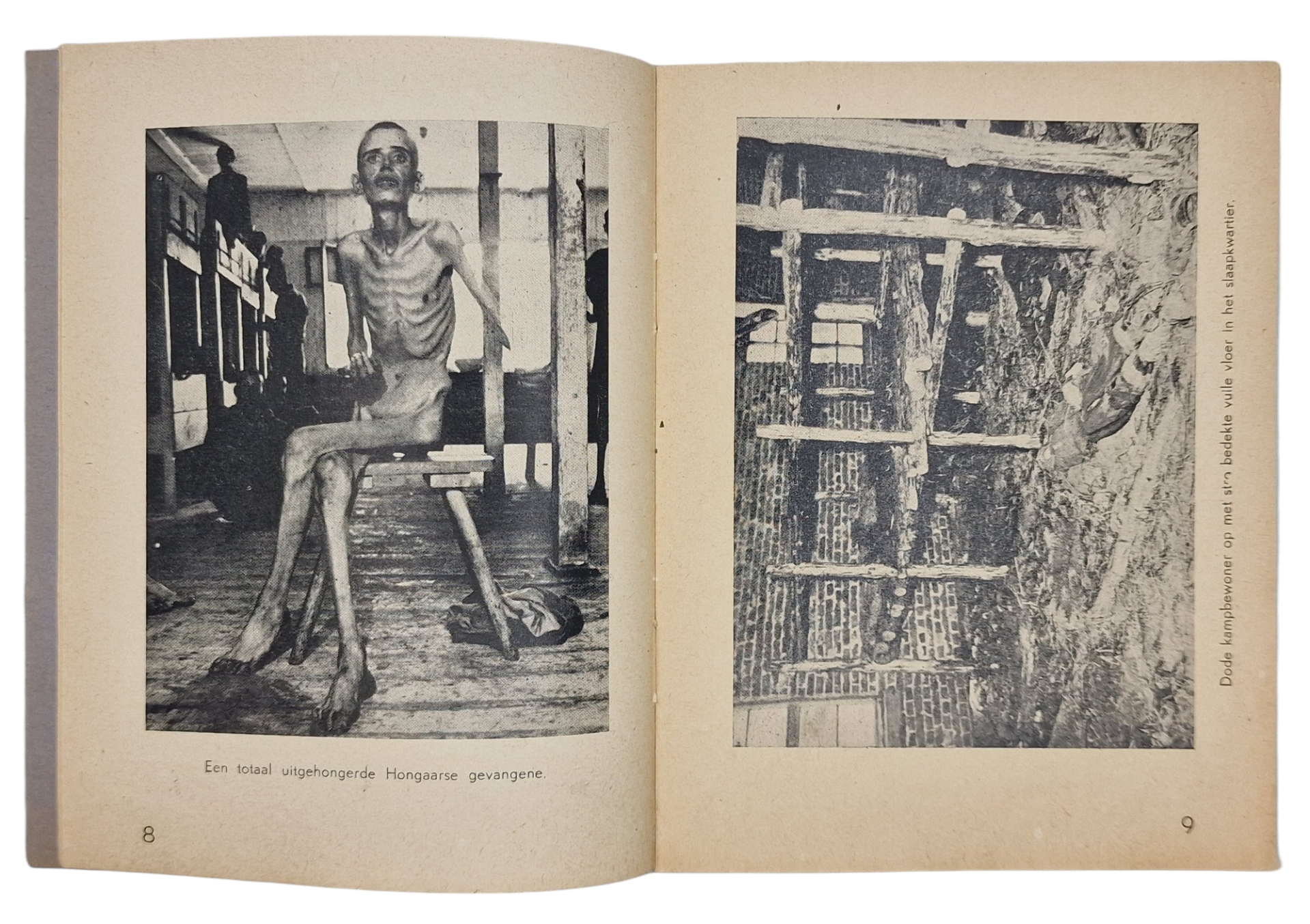 Deze brochure laat een aantal fotos zien van Duitse concentratiekampen. Er zitten geen fotos in van verwoest Arnhem in deze brochure.