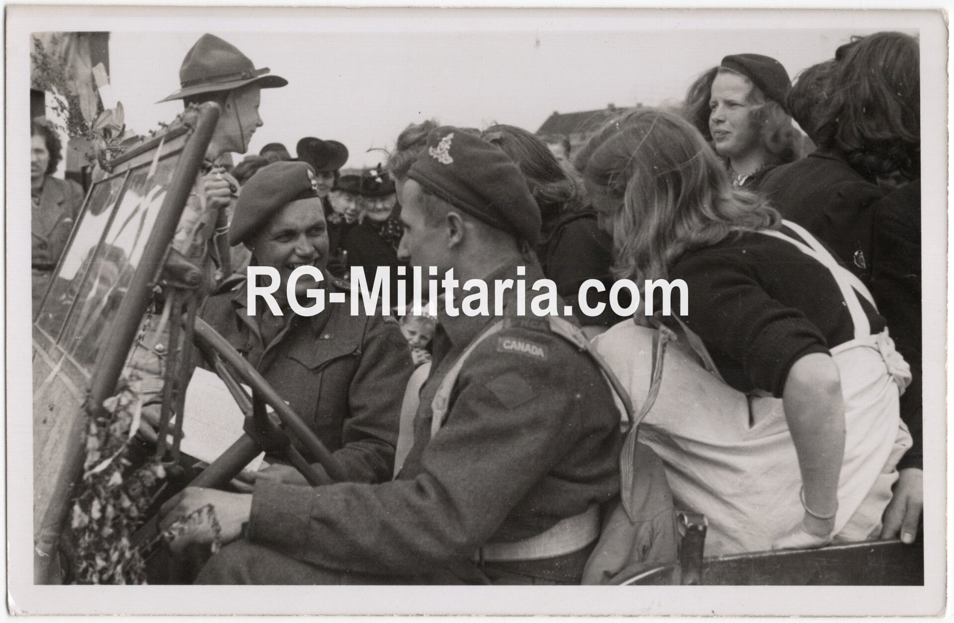 Original WW2 Dutch Liberation Press Photo - Canadian RCA troops arrive in Amsterdam (1945)
