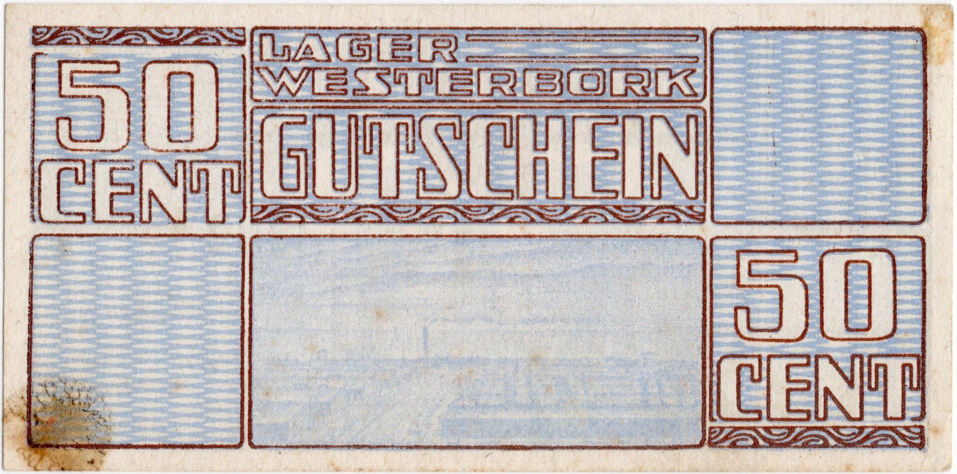 Origineel Wo2 Nederlands Document - Concentratiekamp Westerbork 50 cent CC, misdruk (1944)