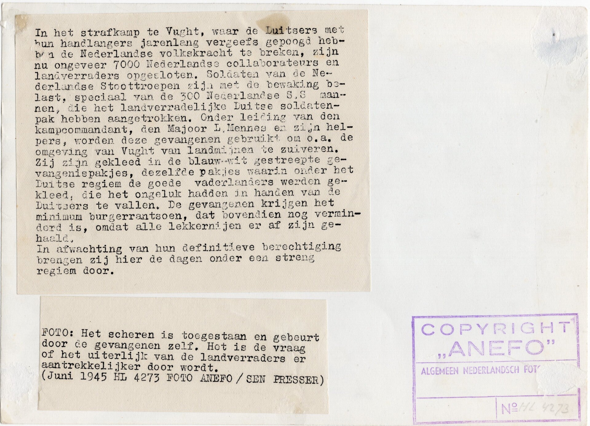 Originele Wo2 Nederlandse Persfoto - Nederlandse collaborateur interneringskamp Vught, voormalig Konzentrationslager Herzogenbusch (1945)