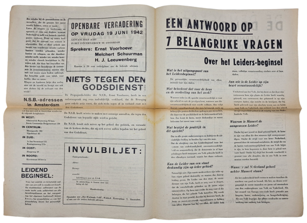 Original WW2 Dutch Collaboration NSB Newspaper - 't Werkende Volk, 1st Year No. 19 (1942)