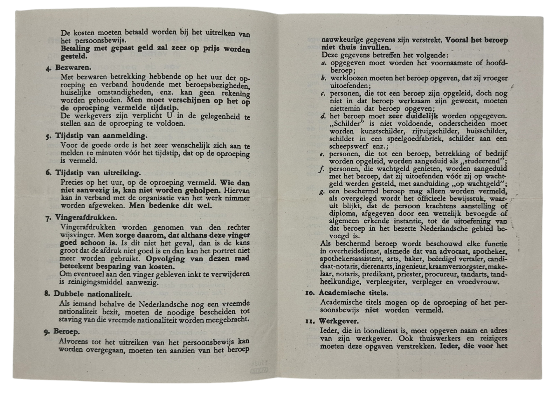 Original WW2 Dutch Document - Persoonsbewijs instructions
