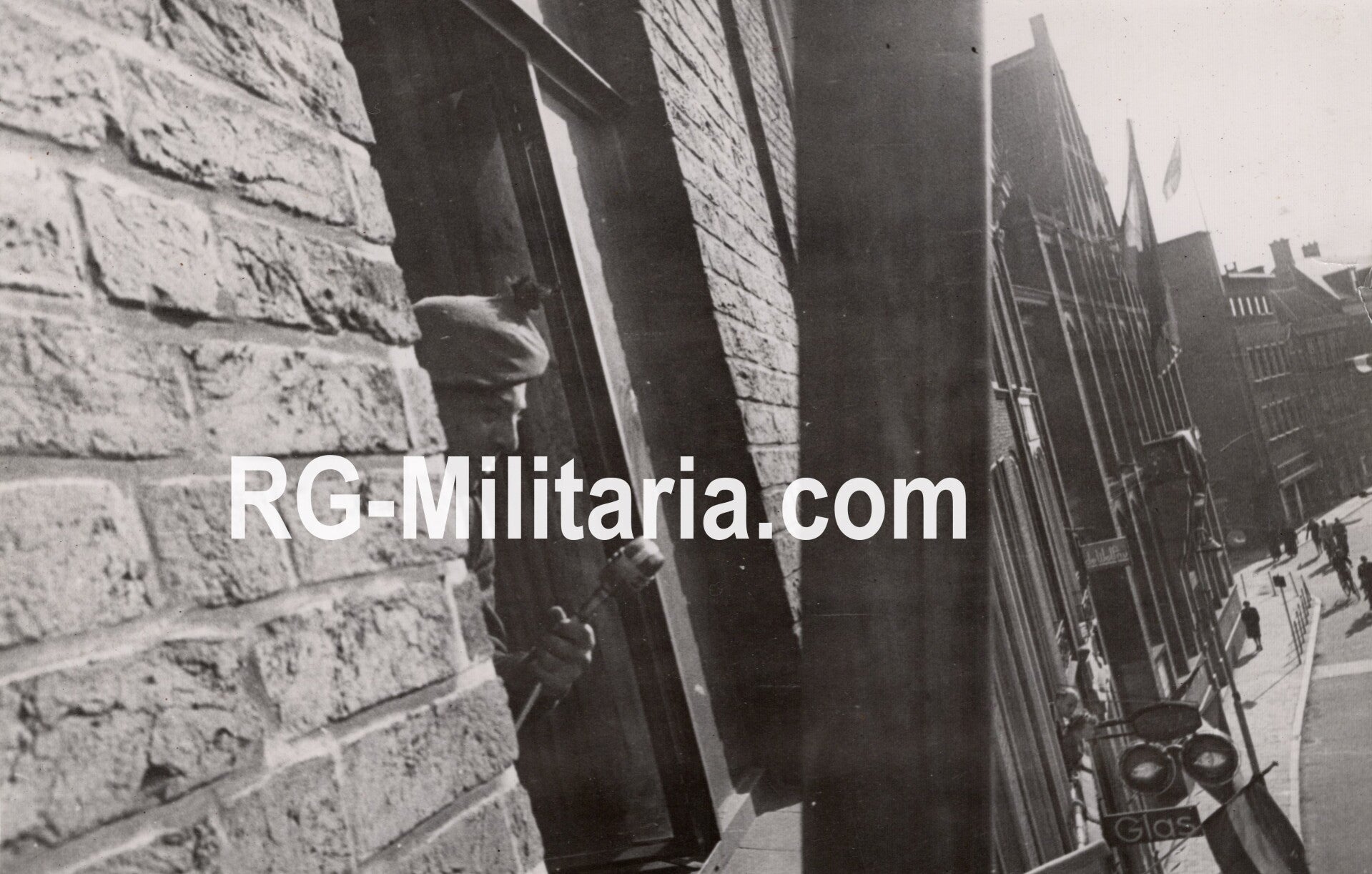 Original WW2 Dutch Liberation Press Photo - Allied soldier declares The Hague liberated (1945)