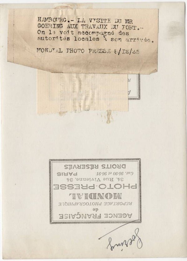 Originele Wo2 Franse Persfoto - Hermann Goring op bezoek bij de haven van Hamburg (1935)