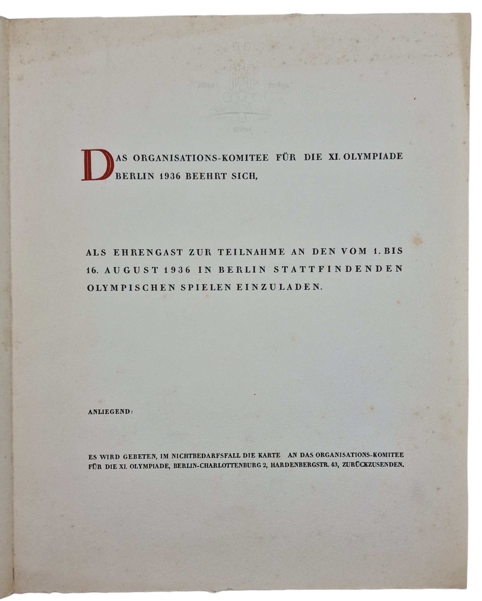 Original WW2 German Document - XI Olympiade Berlin, Olympics invitation guest of honor (1936)