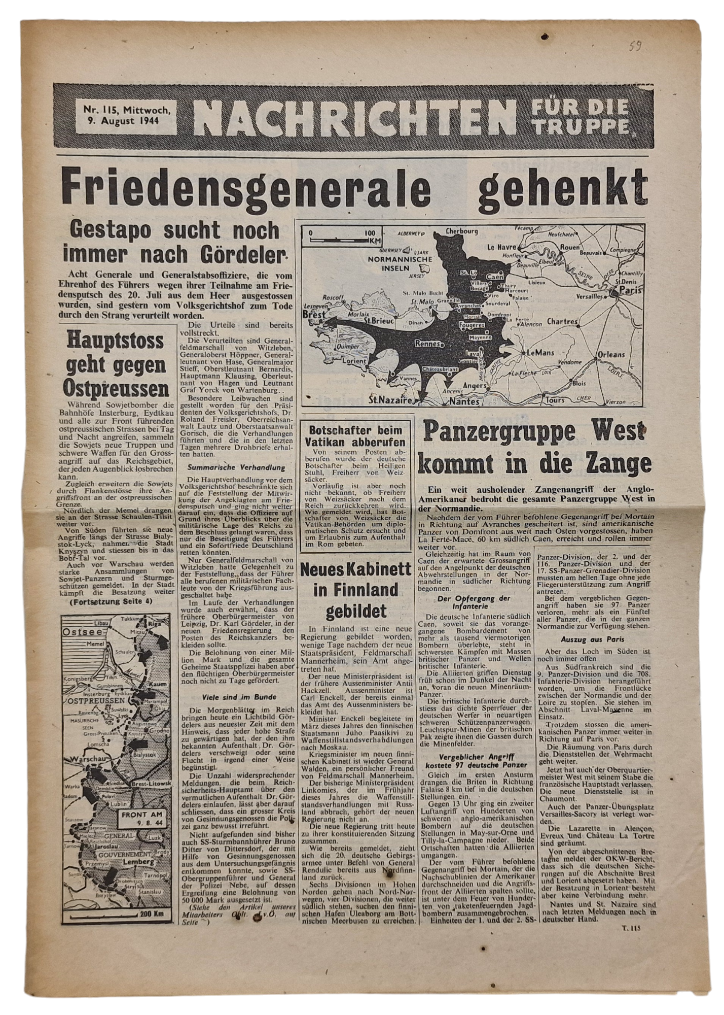 Original WW2 British Leaflet - Nachrichten für die Truppe Nr. 115, Operation Overlord (1944)