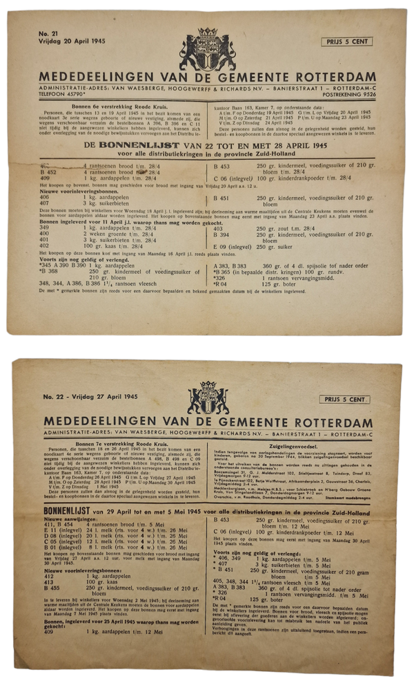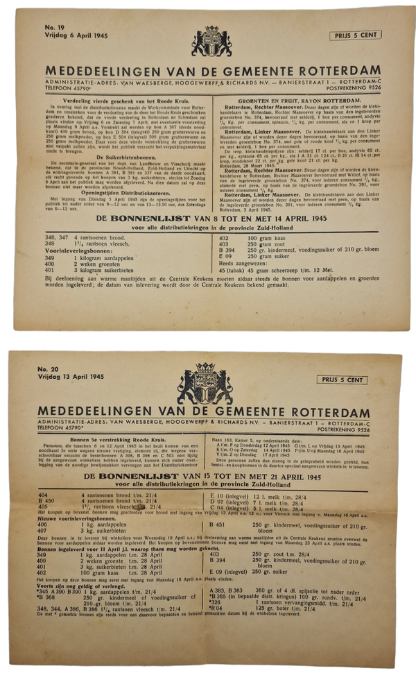 Original WW2 Dutch Document - Food distribution, Distributiedienst Rotterdam food stamp sheets (1945)