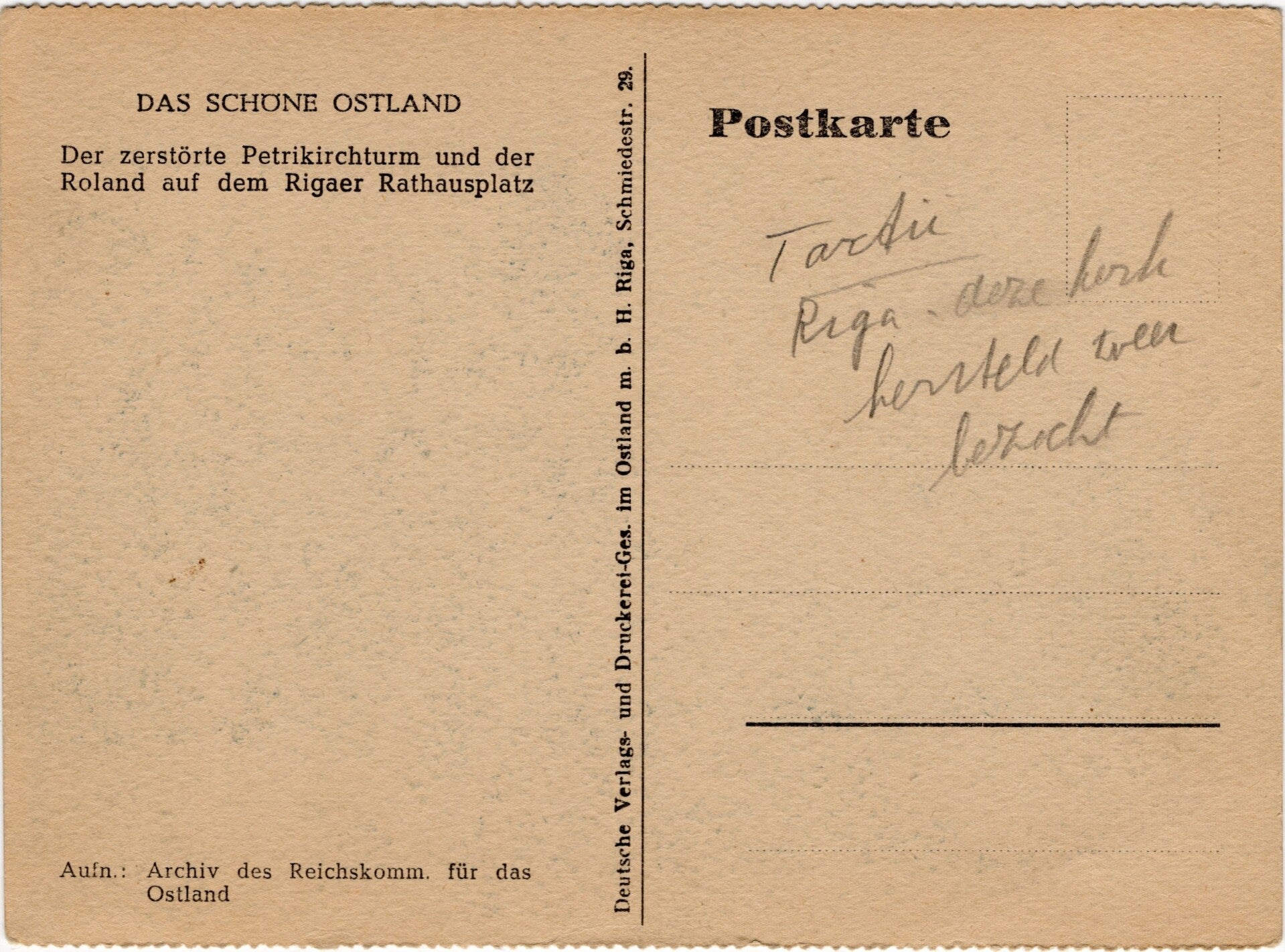 Original WW2 German Postcard - ''Das Schöne Ostland, Riga''