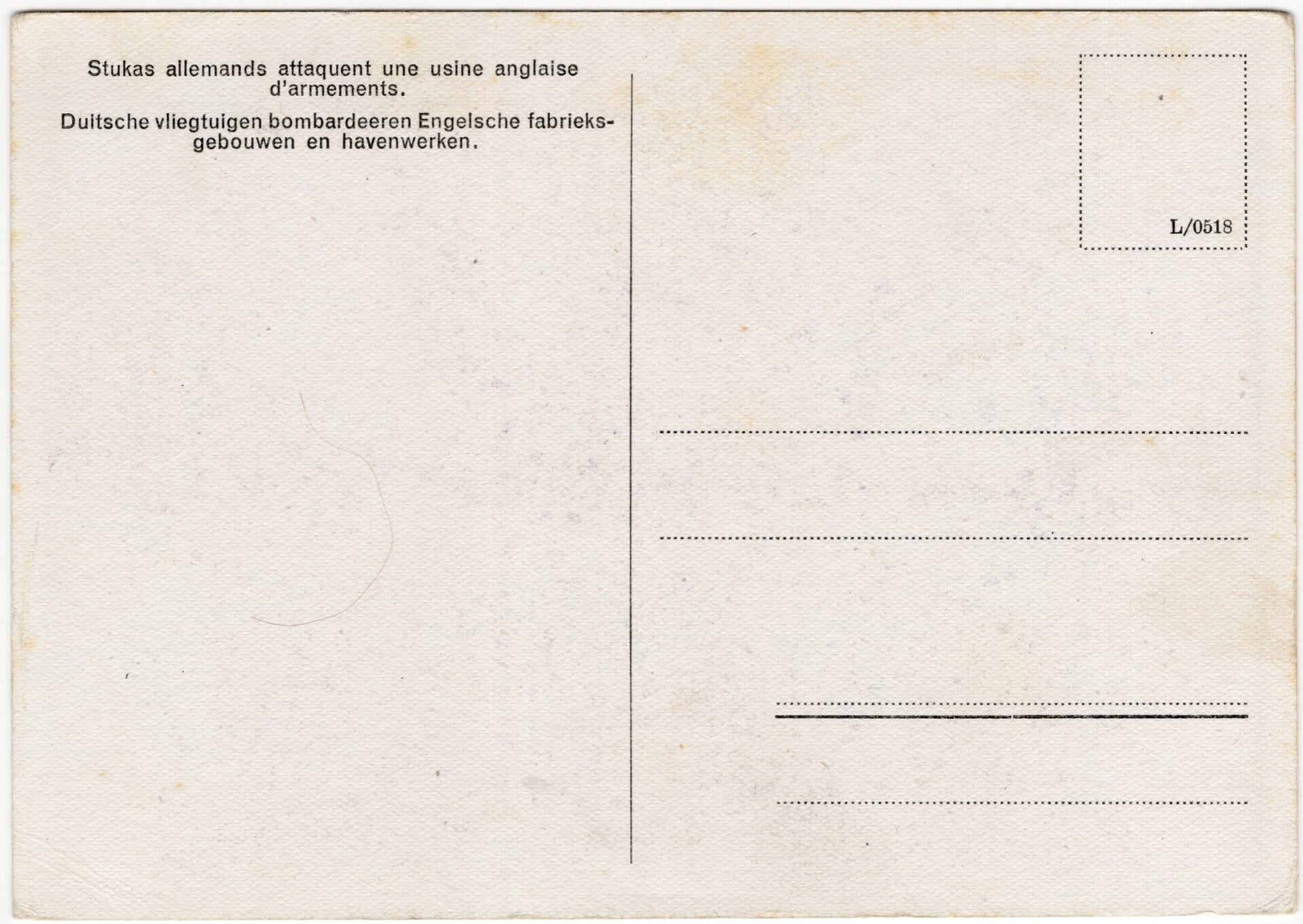 Original WW2 Belgian Collaboration Postcard - ''Duitsche vliegtuigen bombardeeren Engelsche fabrieksgebouwen en havenwerken''