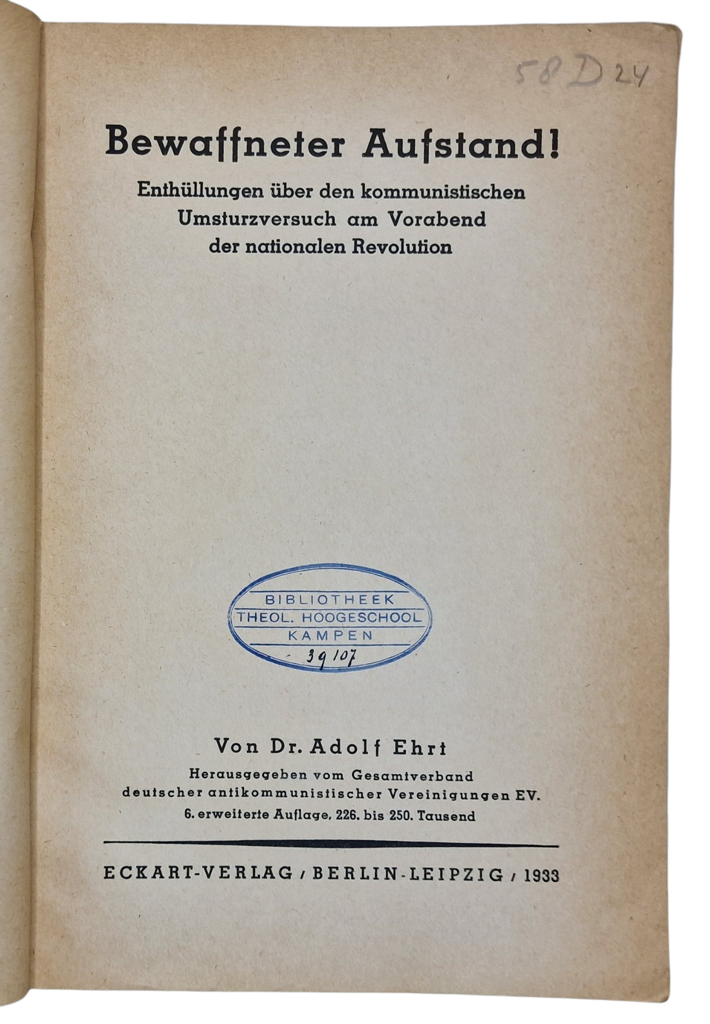 Origineel Wo2 Duits Boek - Bewaffneter Aufstand!, Adolf Ehrt (1933)