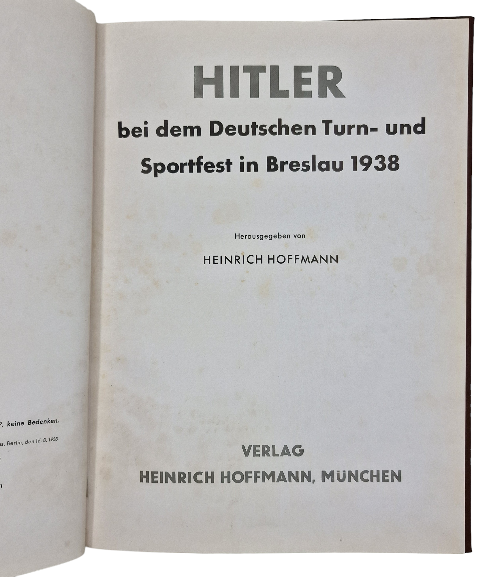 Een van de lastiger te vinden Hoffmann fotoboeken, een over de Turn- und Sportfest in Breslau uit 1938. Het boek is in een moderne kaft geplaatst.
