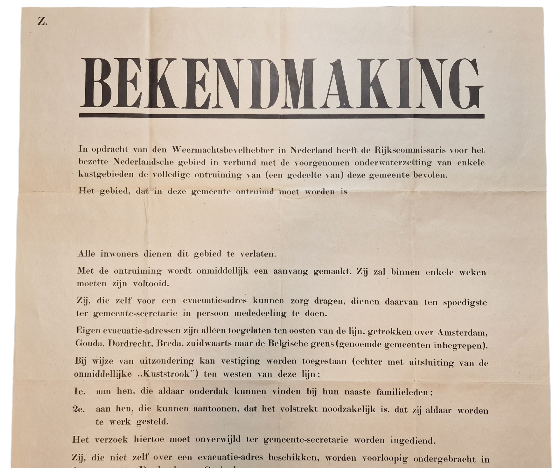 Original WW2 Dutch Poster - Evacuation of coastal areas in the Netherlands, The Hague (1944)