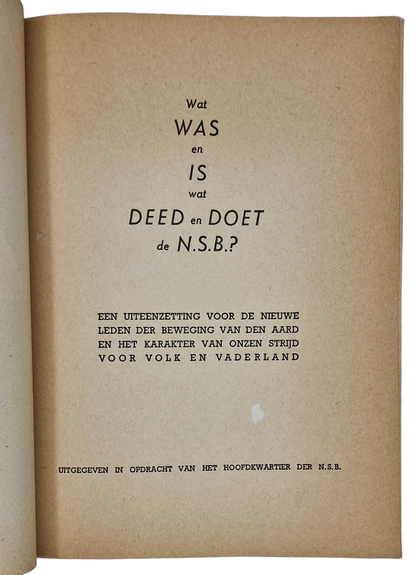 Original WW2 Dutch Collaboration NSB Brochure - Wat was en is wat deed en doet de NSB (1941)