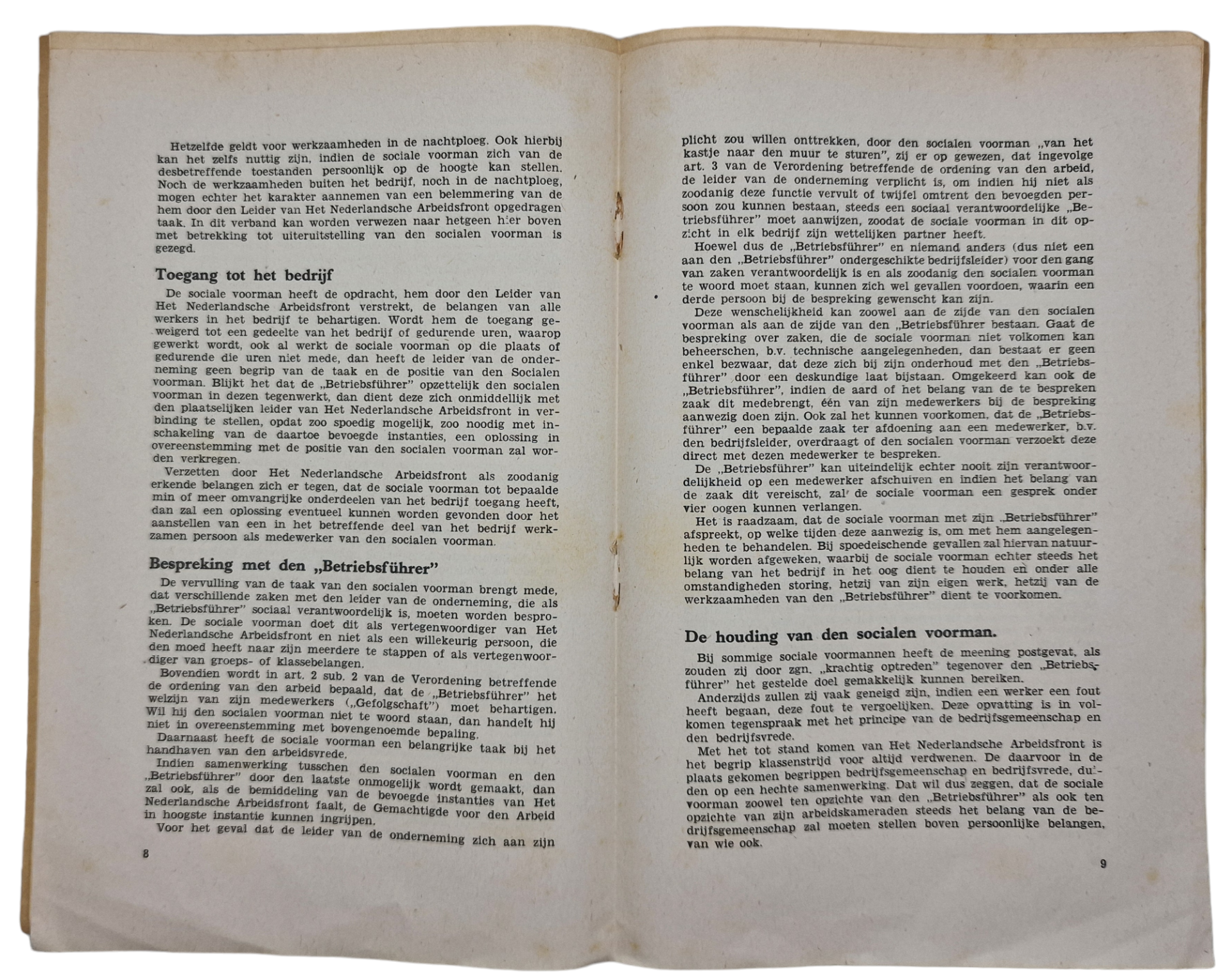 Original WW2 Dutch Collaboration NAF Brochure - Positie en taak van den socialen voorman, Kooistra (1943)